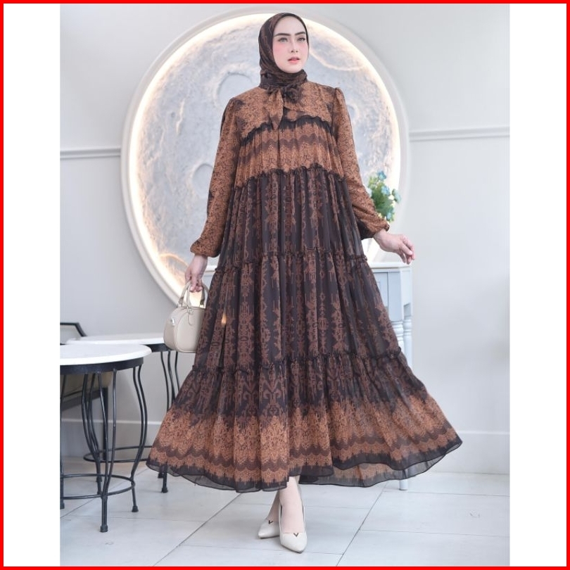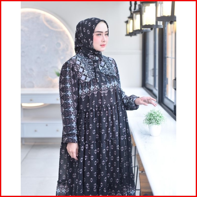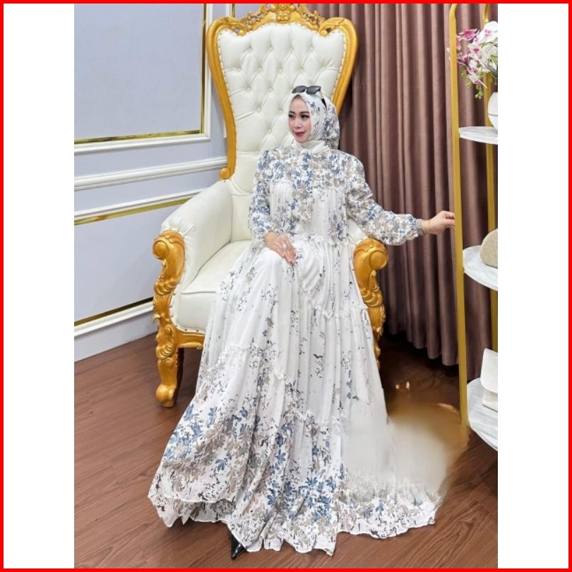 Set Hijab Ceruty Sabrina Dress Pesta Muslimah Gamis Lebaran Wanita Terbaru Oversize Ld 120