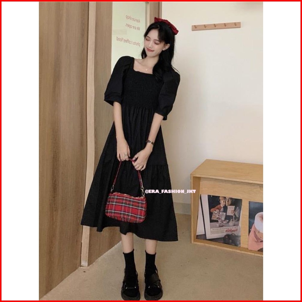 Smocked Dress Floral Midi Dress Polos Korea Style