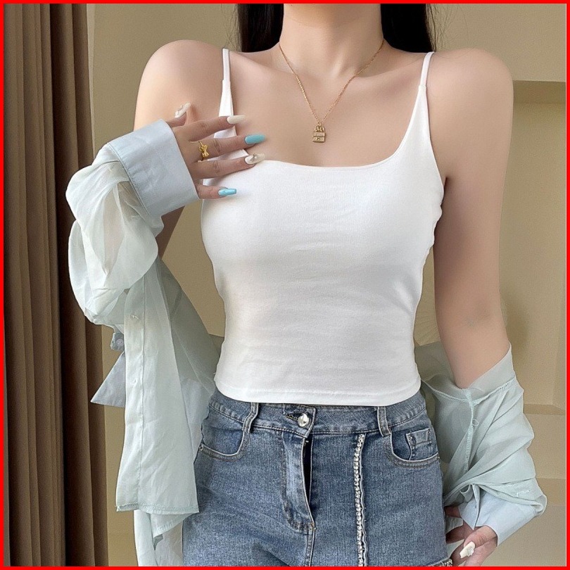 Bv.id Br2116 Atasan Wanita Tanktop Singlet Korean Baju Sexy Motif Polos Tanpa Lengan Bra With Cup