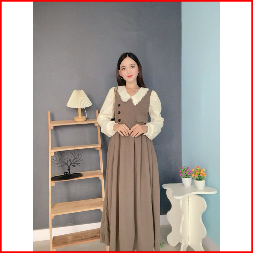 Ios Shop Lizzy Midi Dress Polyester Kasual Kantor Wanita Korean Style