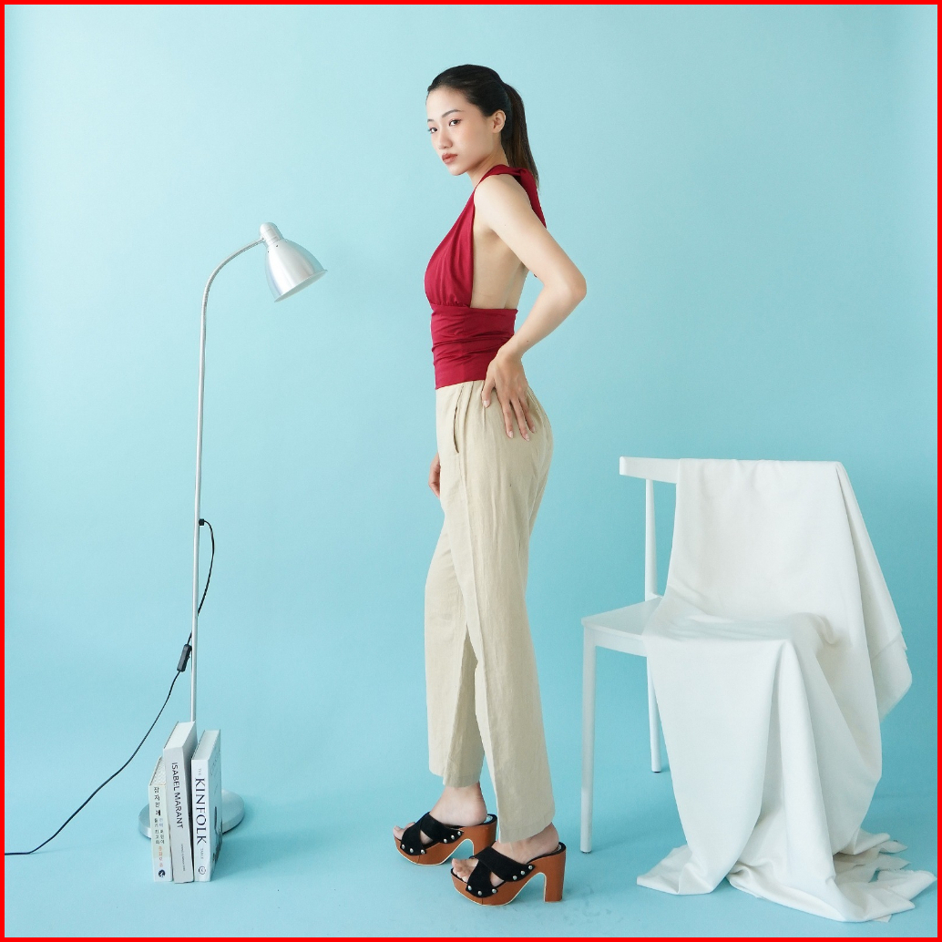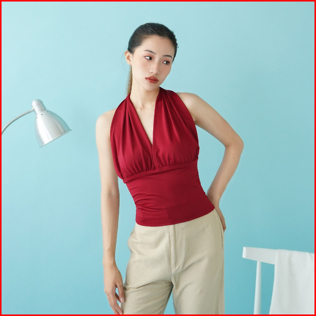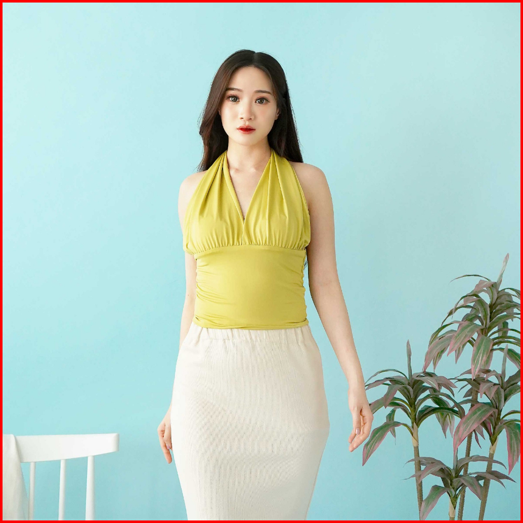 Oroy Halter Tanktop V-neck Korean Tank Top Crop Halter Backless Wanita Or0050