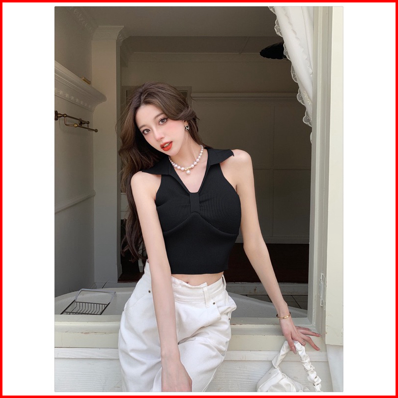 Bisa Codtank Top Camisole Wanita Model V-neck Crop Tanpa Lengan Leher Polo Gaya Korean Style T266 Atasan Rajut Tengtop T