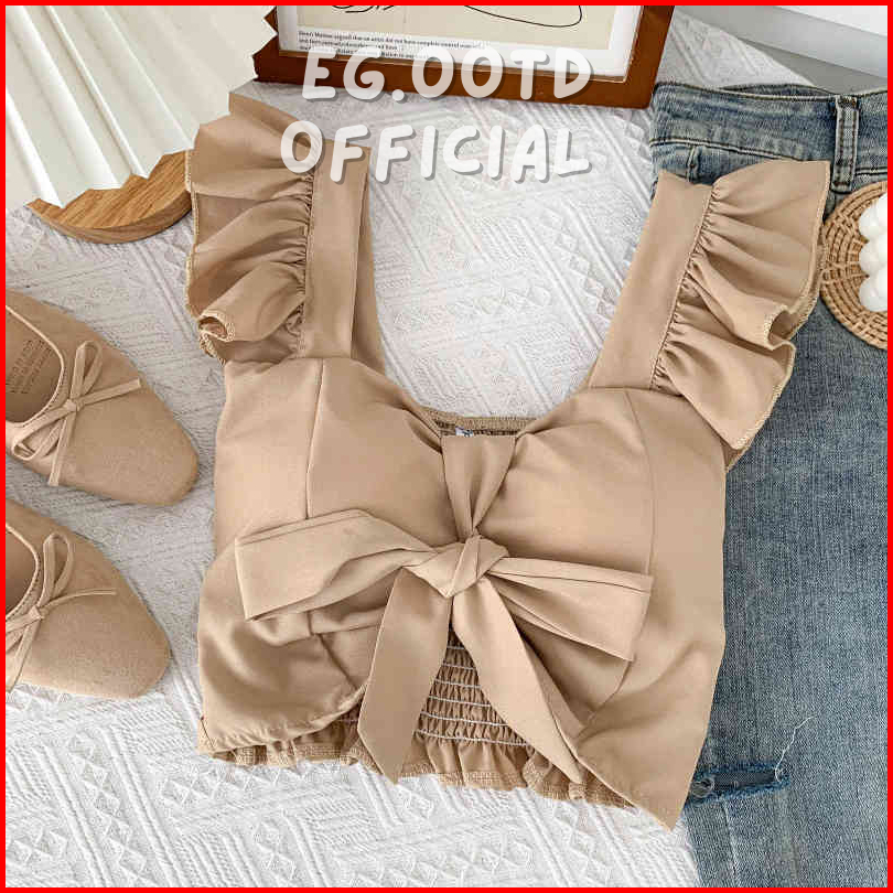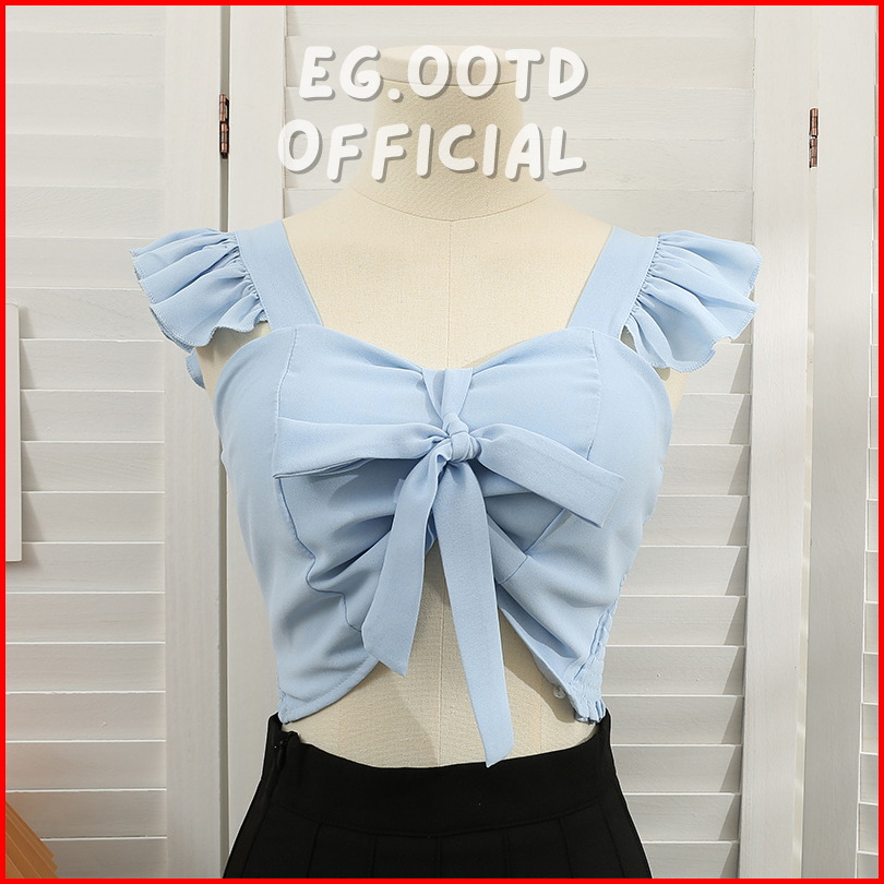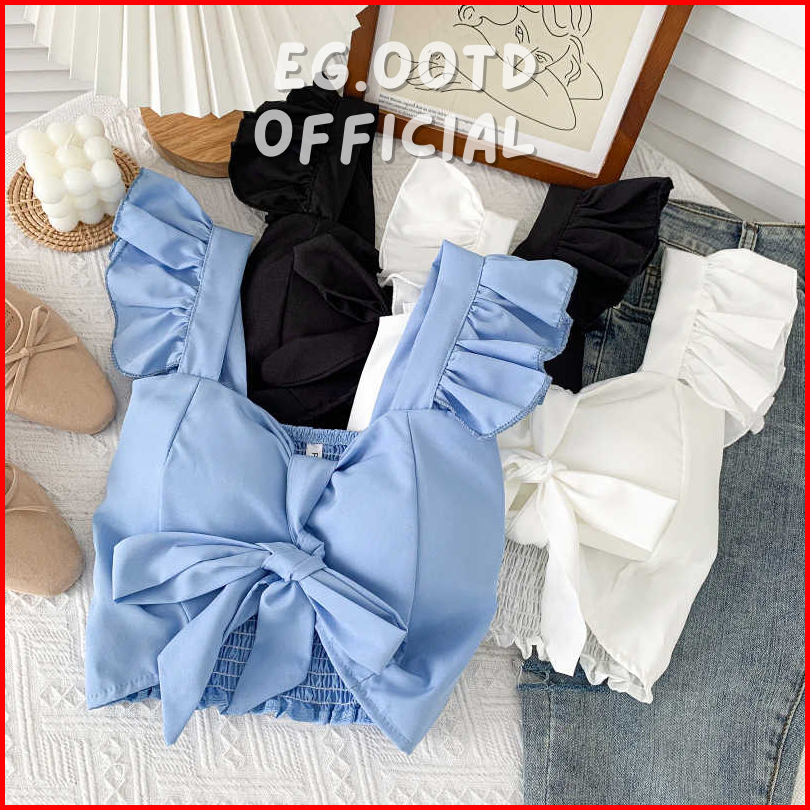 Eg.ootd - 034 Short Bow Knot Premium Crop Top Pita Tank Top Wanita Model Pita