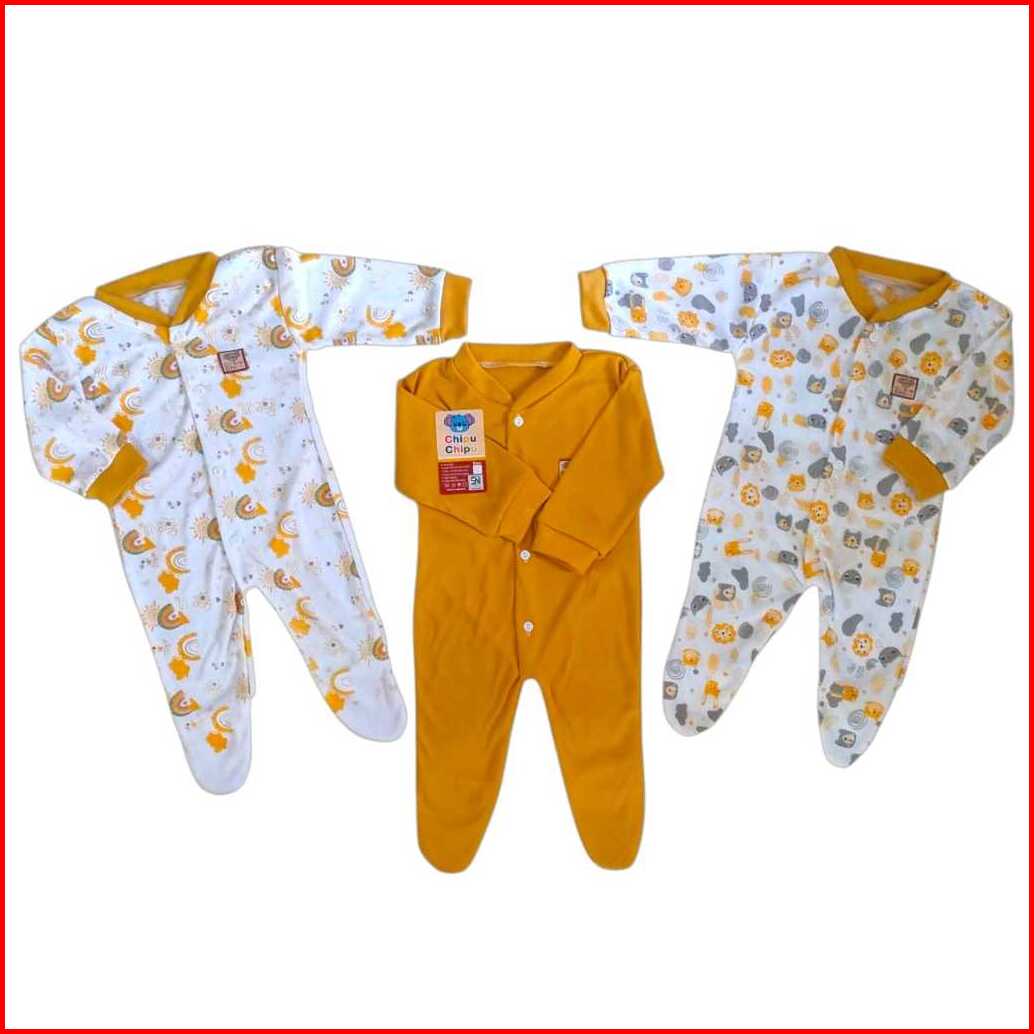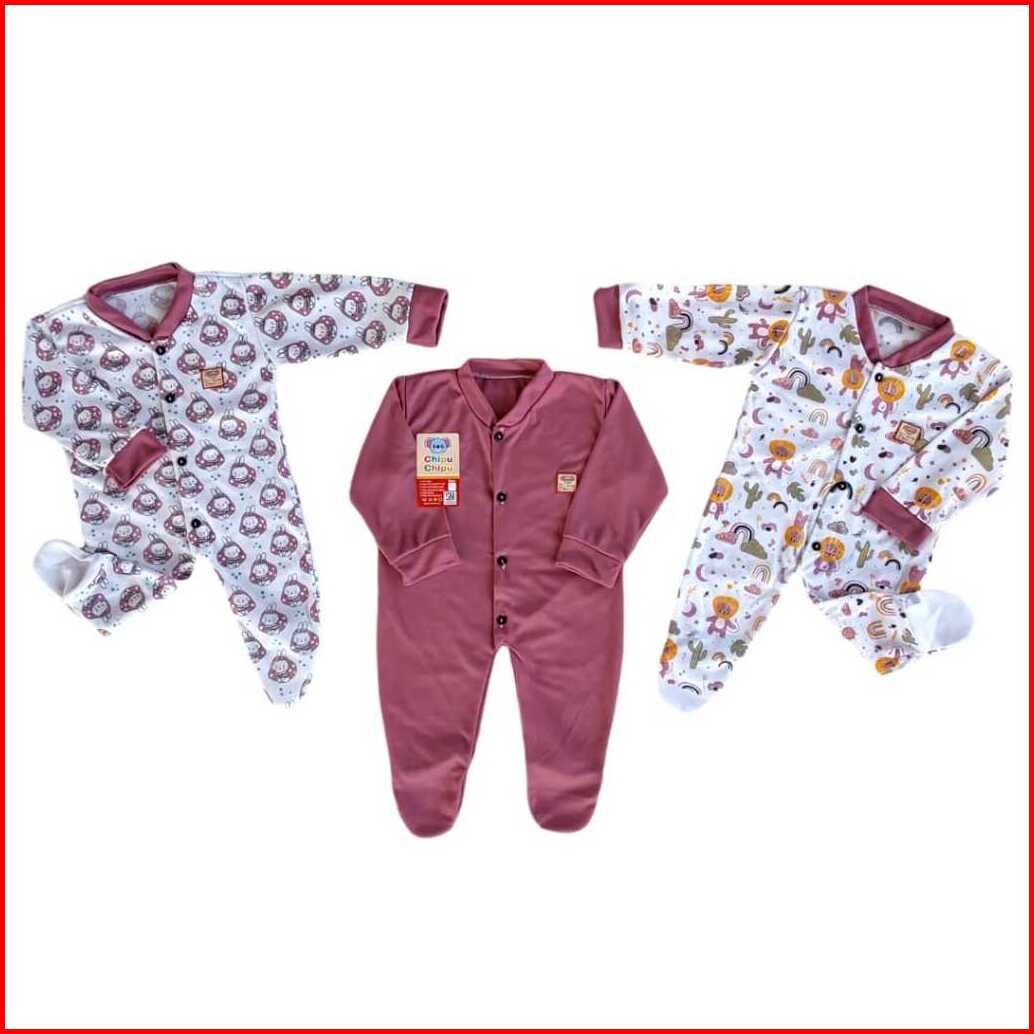 3 Sleepsuit Jumper Bayi Newborn 0 4 Bulan Lengan Panjang Celana Kaki Tutup Bodysuit Bayi Baru Lahir Bahan Lembut Motif L