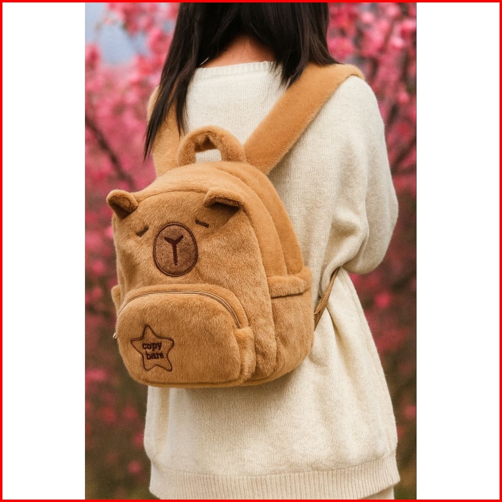 Tas Ransel Kapybara Lucu 3d Bulu Halus Backpack Anak Remaja Tas Sekolah Tas Jalan 35x25cm