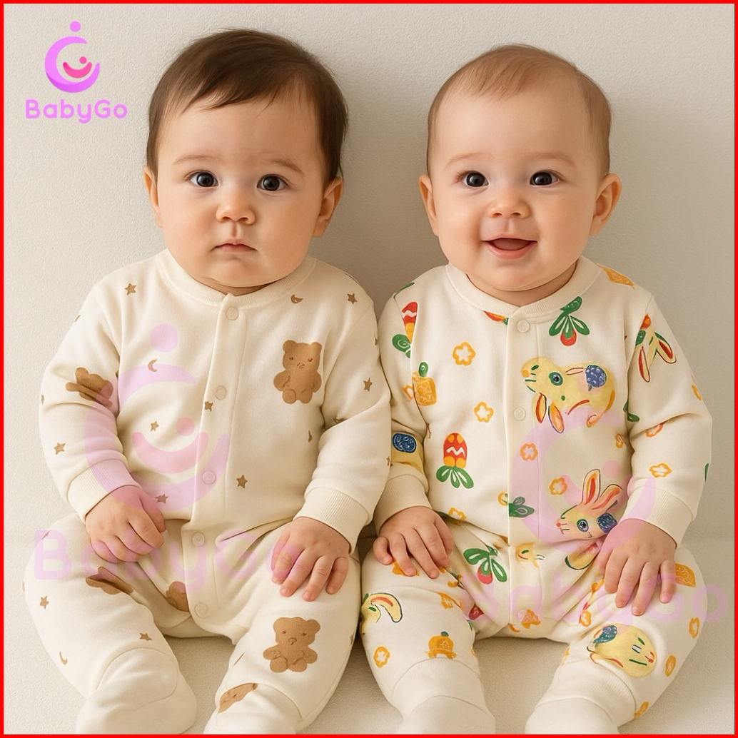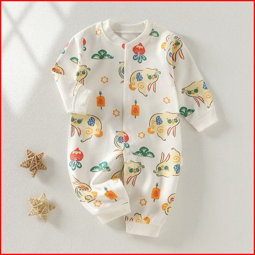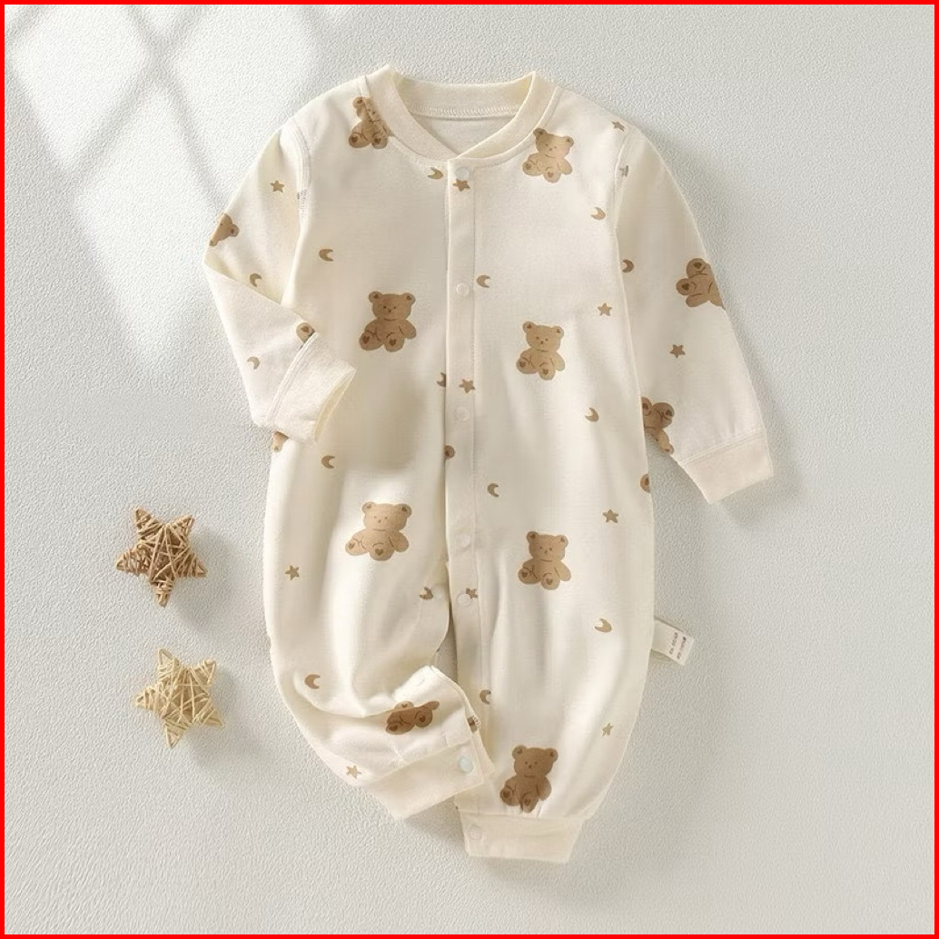 Baju Bayi Newborn Sleepsuit Jumpsuit Bodysuit Lengan Panjang Kancing Tengah Cotton 0-12 Bulan