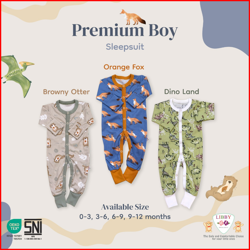 Libby 3 Pcs Sleepsuit Bayi Baby Premium Boy Girl Baju Bayi Perlengkapan Bayi Baru Lahir