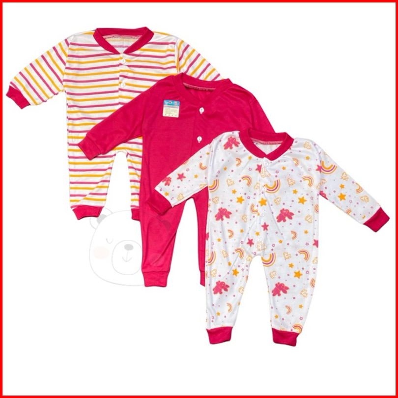 3 Pcs Jumpsuit Sleepsuit Bayi Baru Lahir Romper Bayi Jumper Bayi Panjang Piyama Tidur Bayi Set Newborn