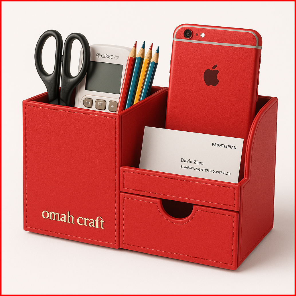 Pen Holder Stationery Leather Tempat Pena Alat Tulis Kantor Remot Kulit Desktop Organizer Diy