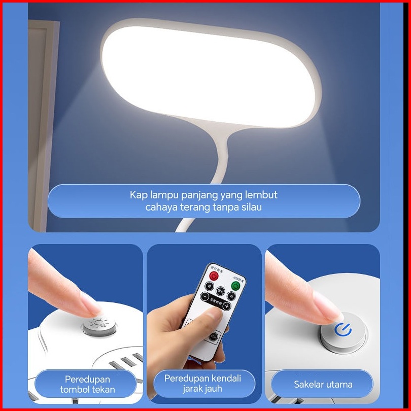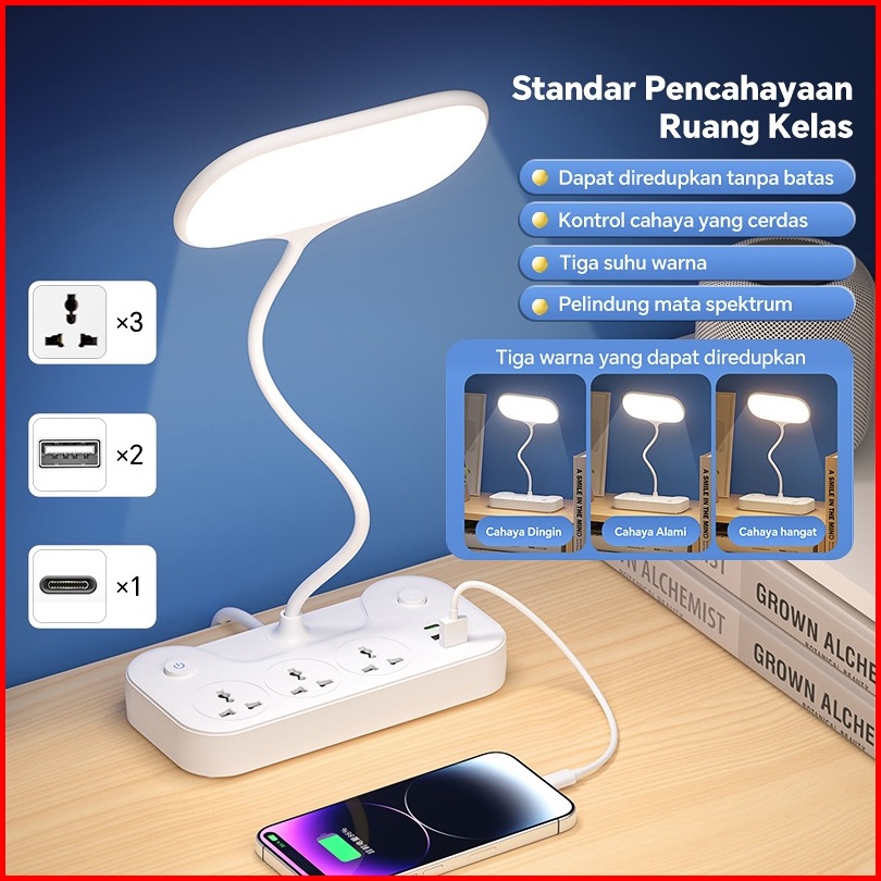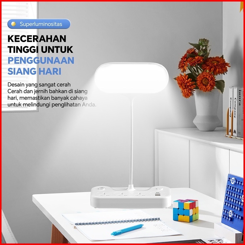 Zhyo Lampu Meja 2-in-1 Dengan Stopkontak Lampu Meja 3 Suhu Warna Dapat Disesuaikan Led Pelindung Mata Belajar Kerja Lamp