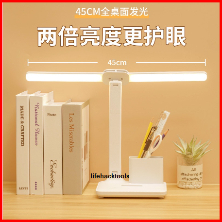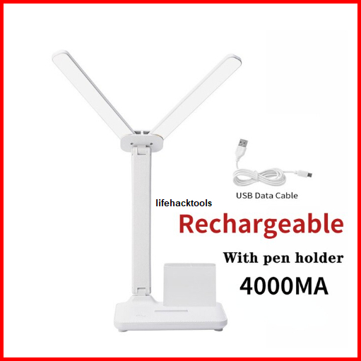Lampu Meja Belajar Led Portable Rechargeable Dua Arah Multifungsi 3 Cahaya Bisa Diredupkan