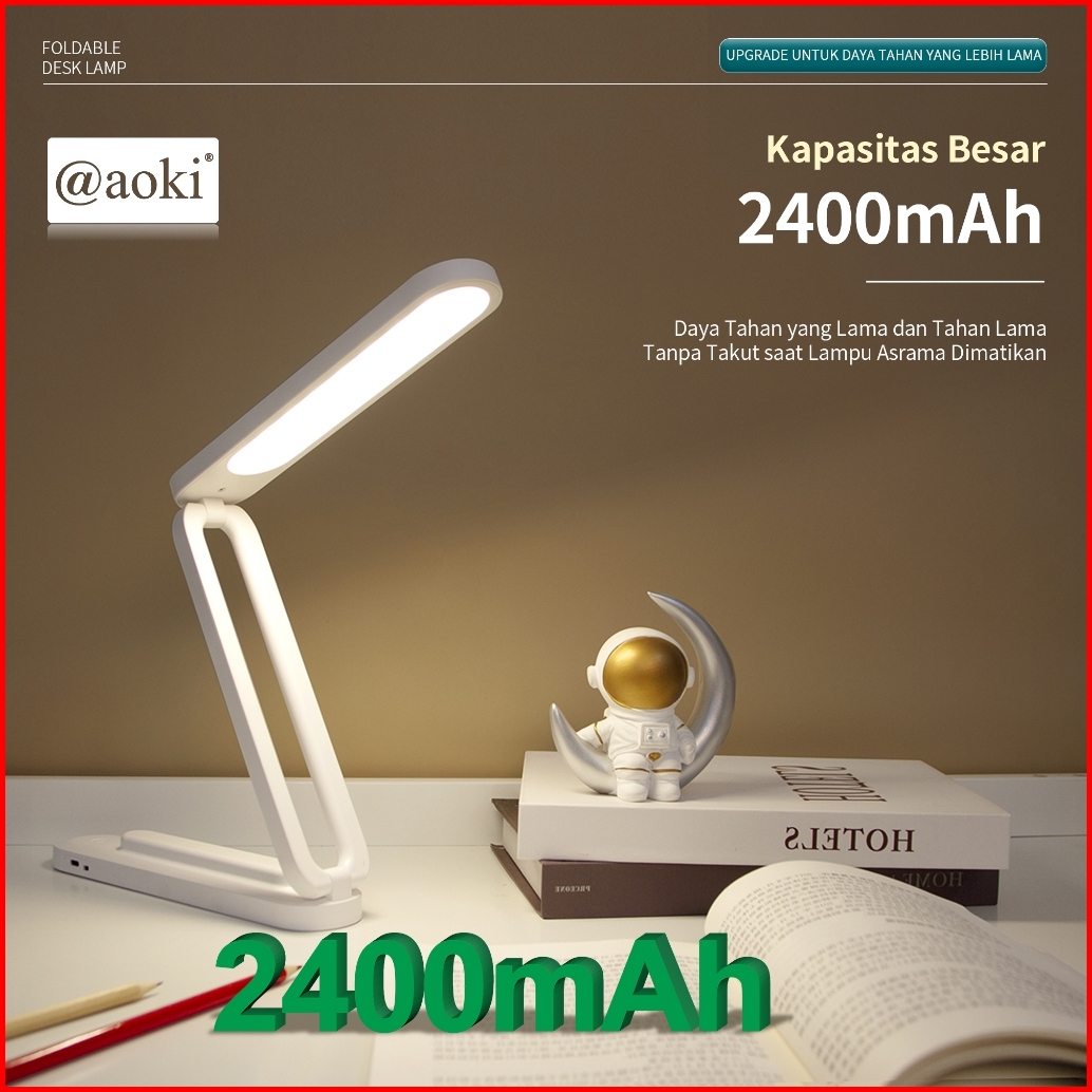 Aoki Lampu Belajar Lipat Praktis 2400mah Daya Tahan Lama Dual Baterai Baca Meja Kerja