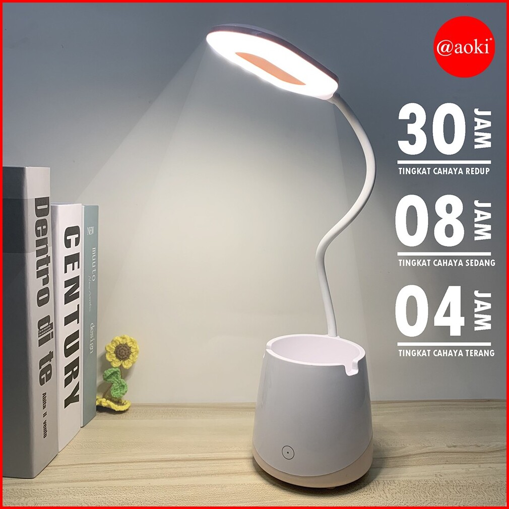 Aoki Lampu Belajar Tempat Pensil Tricolour Sentuh 3warna Dual Baterai Baca Meja Kerja Duduk