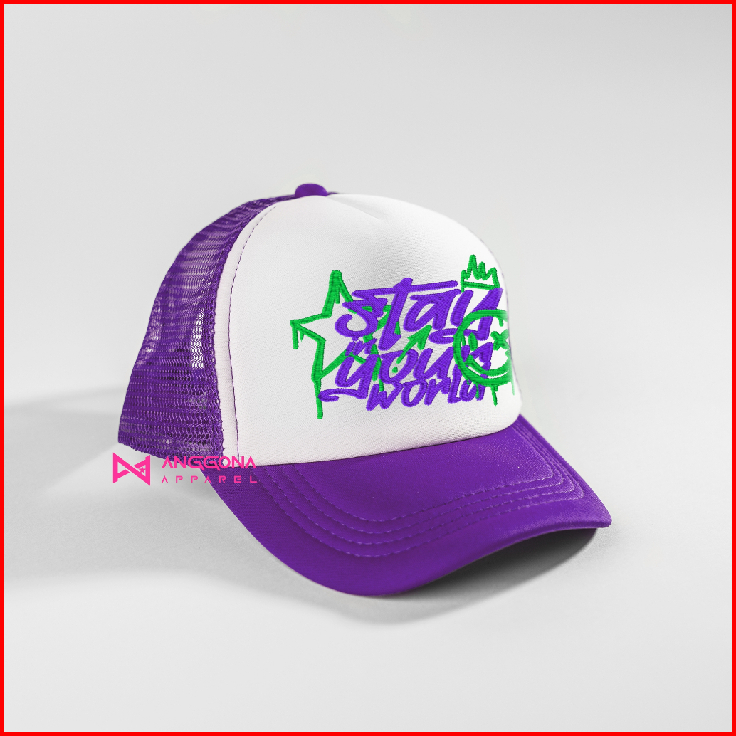 Anggona Apparel Topi Jaring Ping Sky Abu Ungu Outfit Idea Premium Trucker Hat Topi Kalcer Y2k Skena
