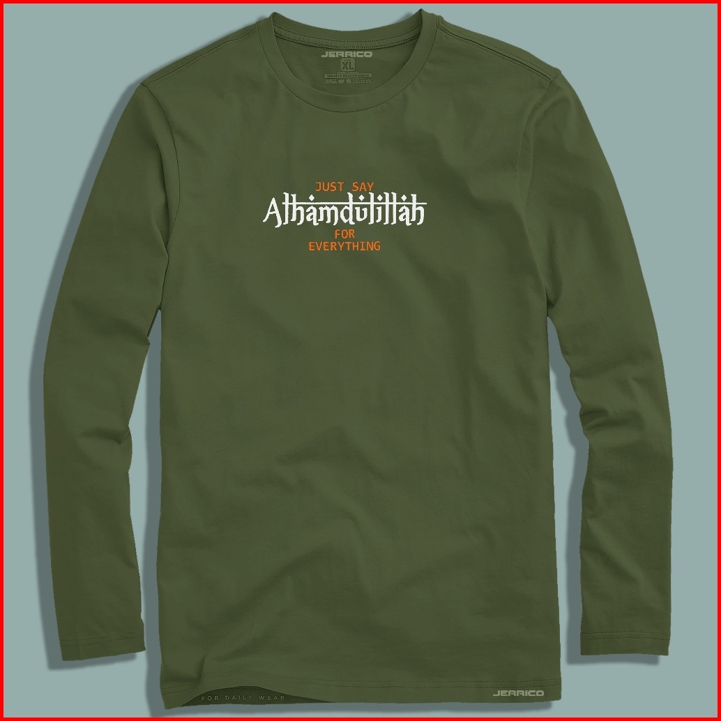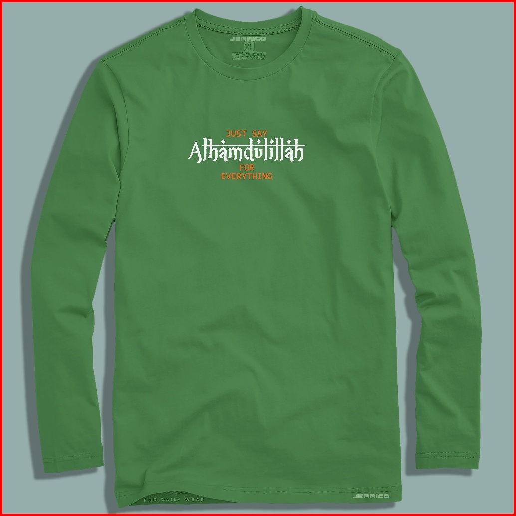 Jerrico T-shirt Motif Alhamdulillah Kaos Distro Lengan Panjang Pakaian Pria Dan Wanita Dewasa