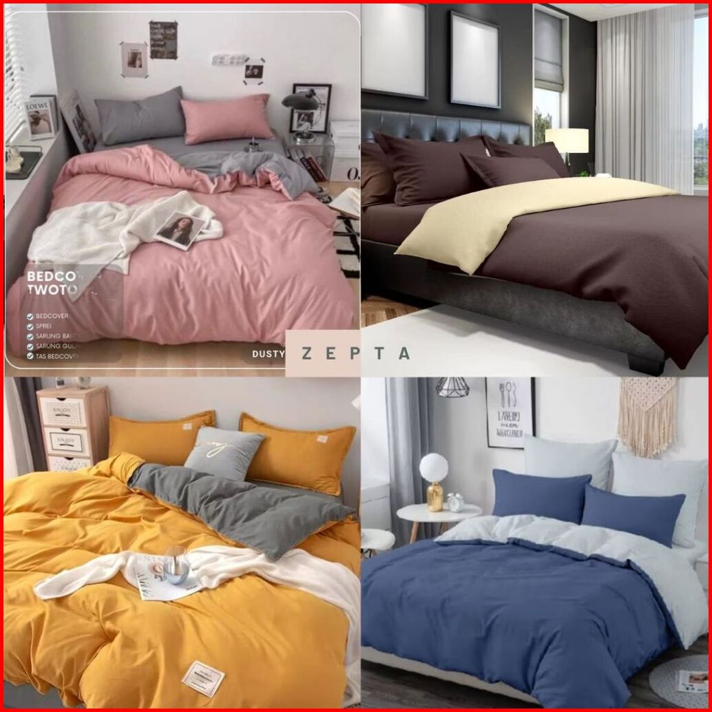 Bedcover Set Polos Premium Pakai Anti Geser Bonus 2 Sarung Bantal