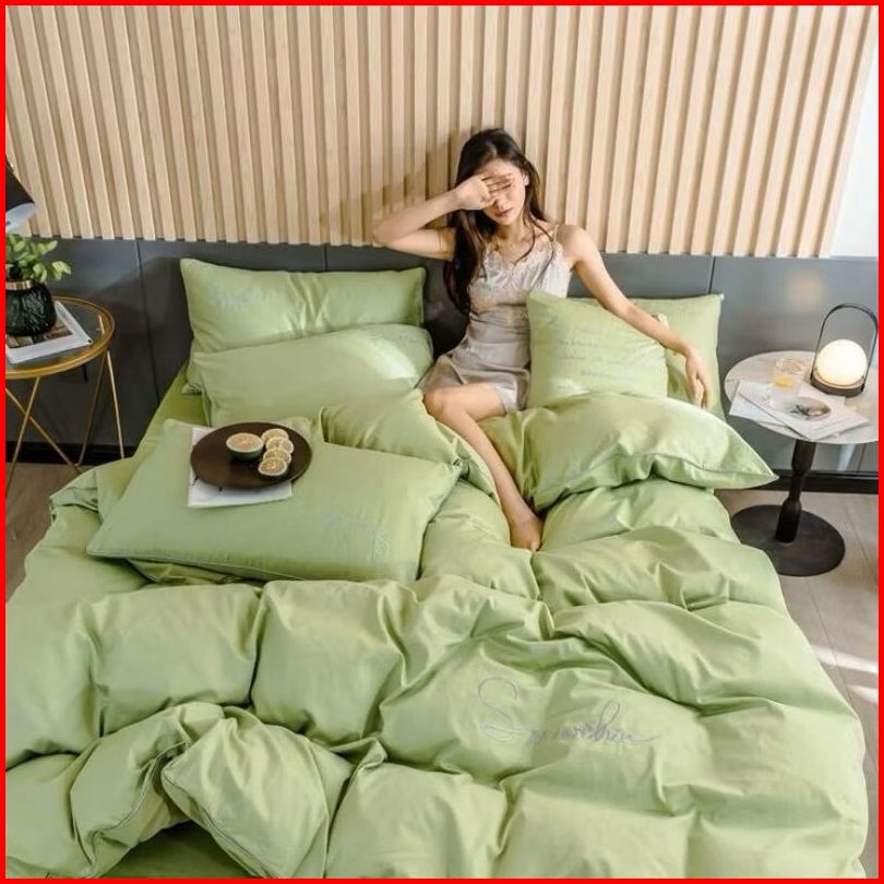 Bedcover Set Sprei Aesthetic Ukuran 90x200x20 - 180x200x20 Karun Halus Lembut Polos Sage