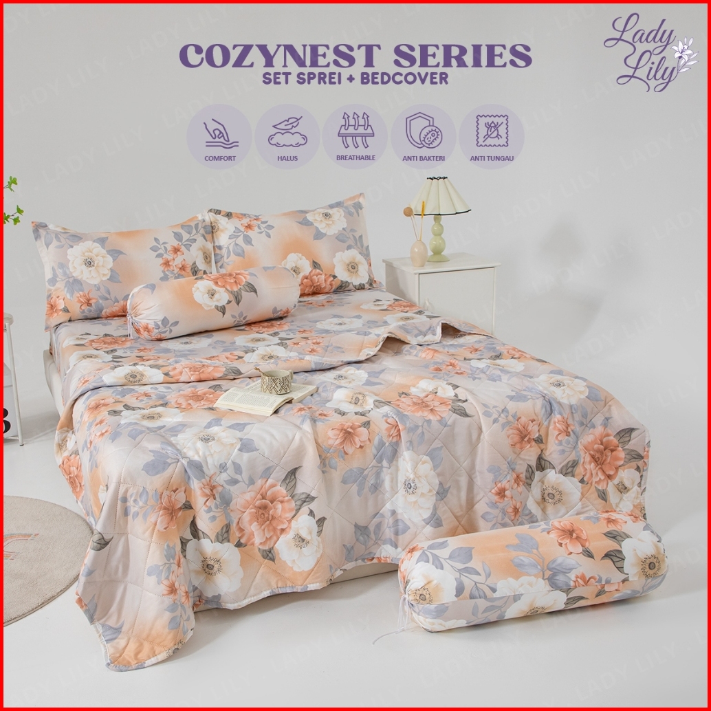 Lady Lily - Set Sprei Bedcover Sarung Bantal Guling Bahan Microtex Halus Set Sprei Bedcover 3 Ukuran