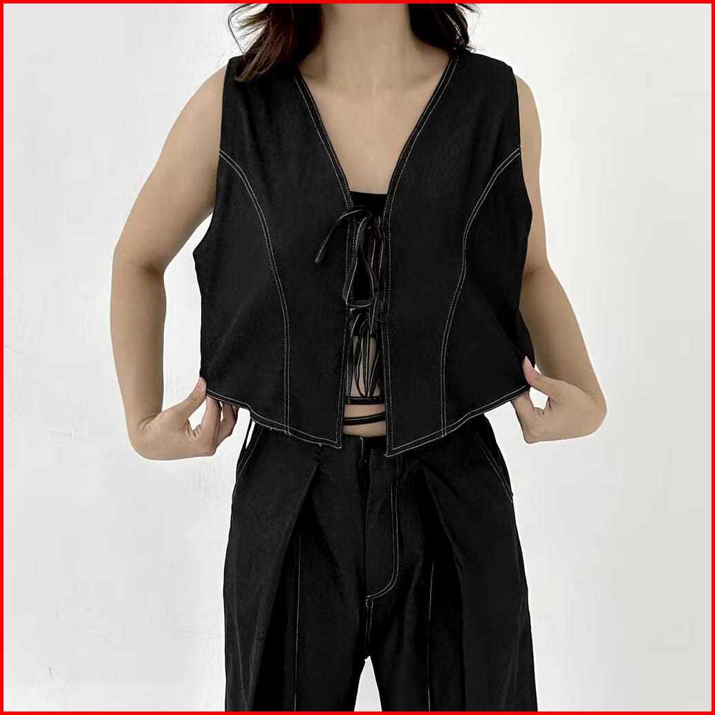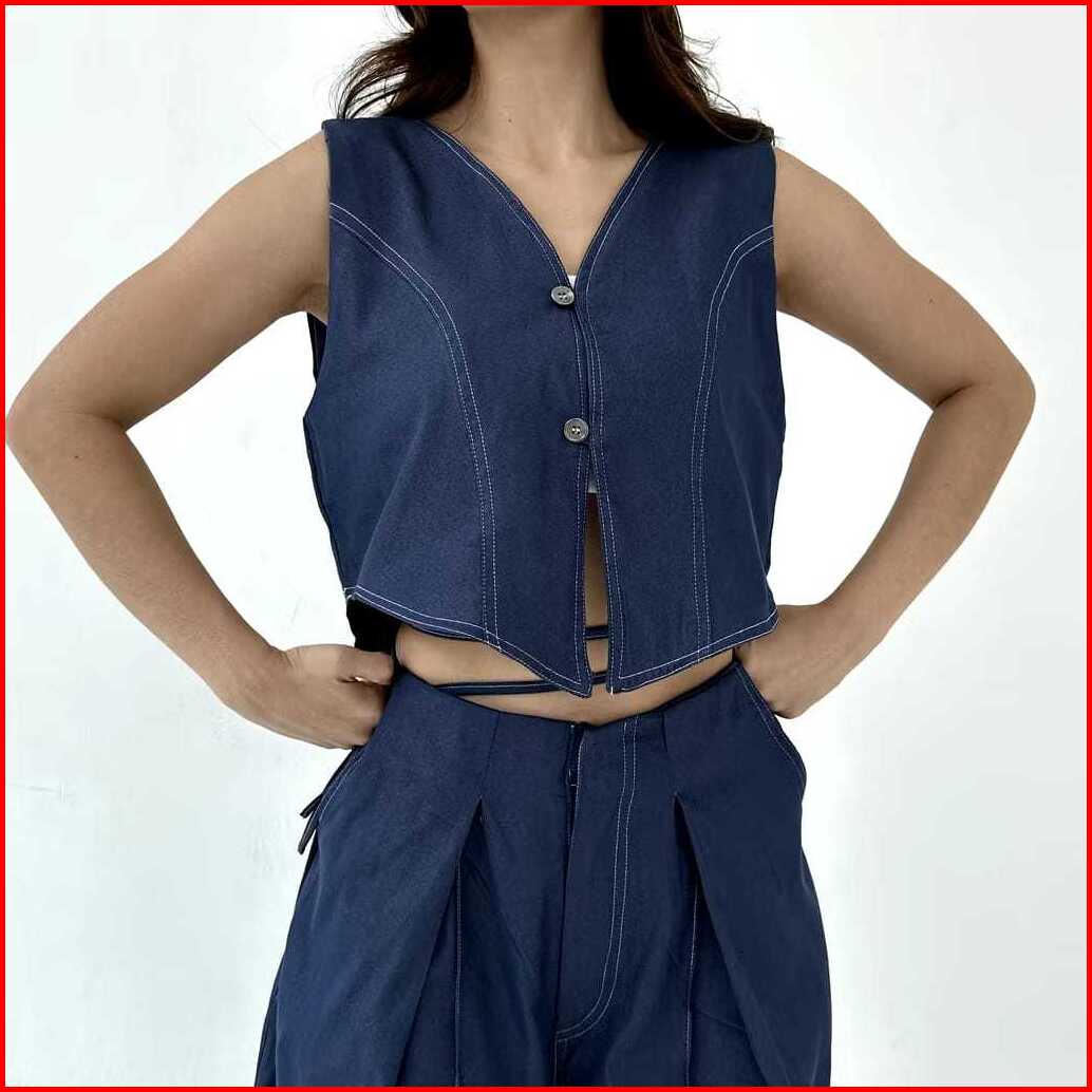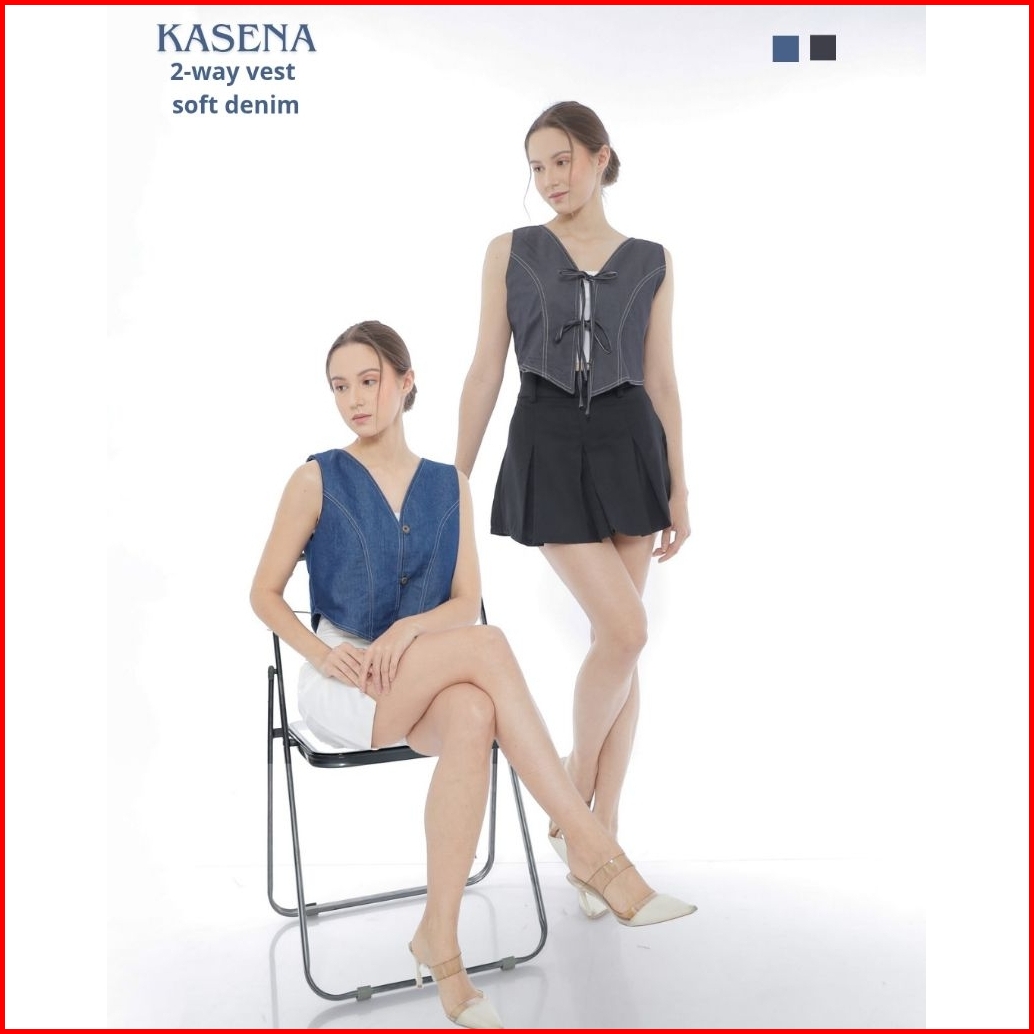 Kasena 2-way Vest Soft Denim Top - Vest Rompi Wanita Atasan Top Halter Neck Tank Top