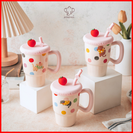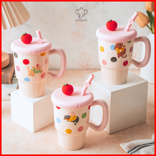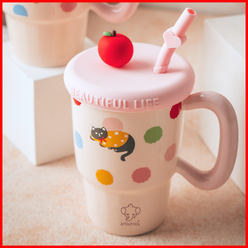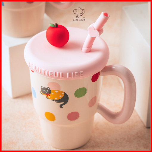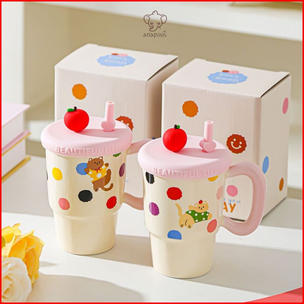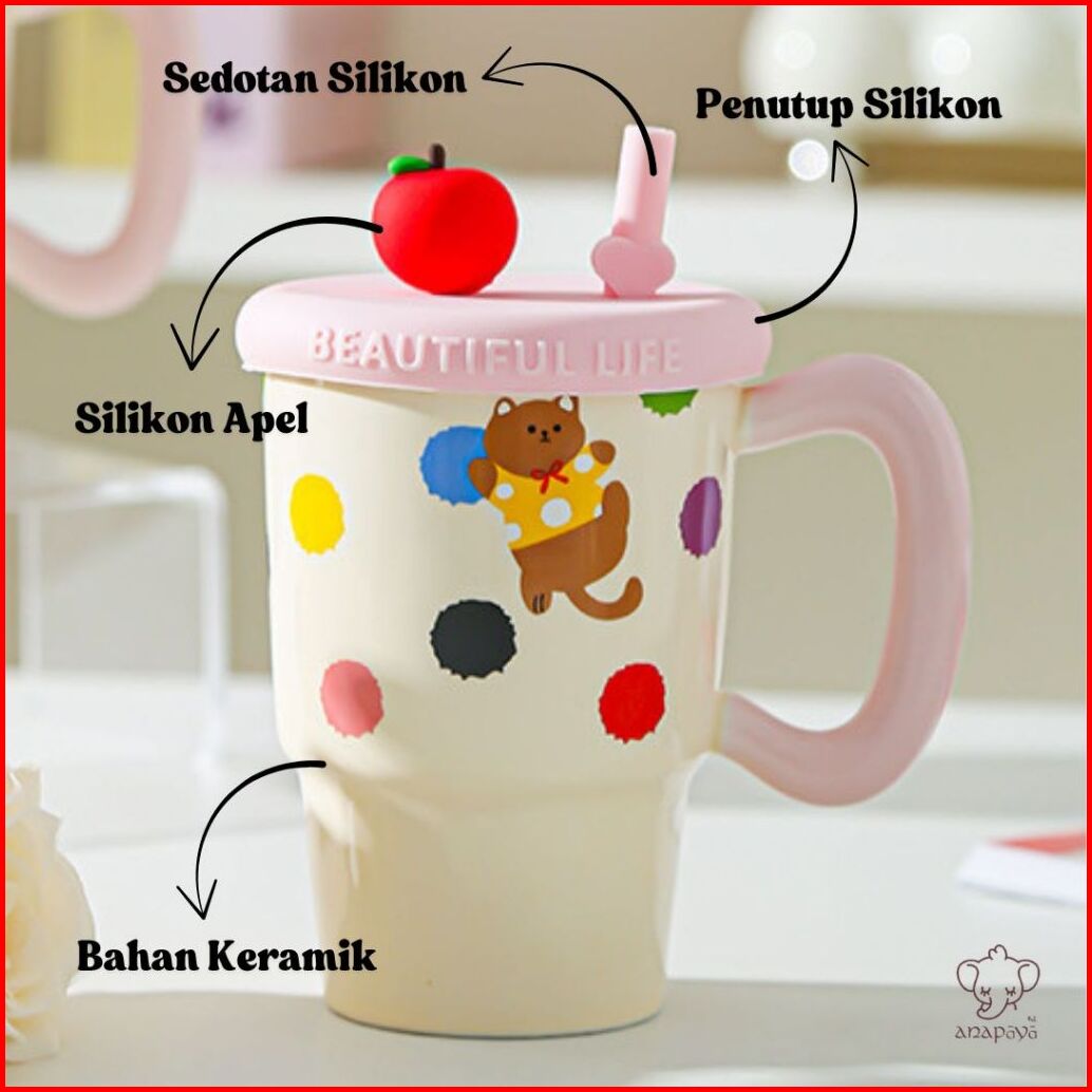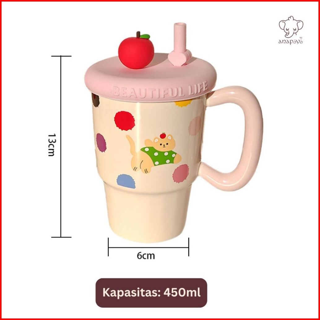 Anapaya - Gatto Gelas Keramik Sedotan Silikon Tutup Silikon Kapasitas 450ml