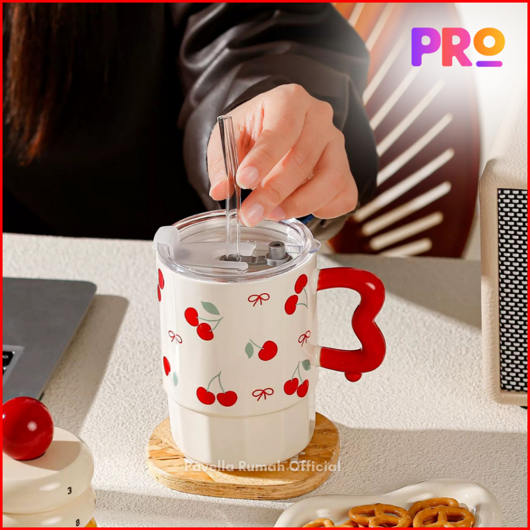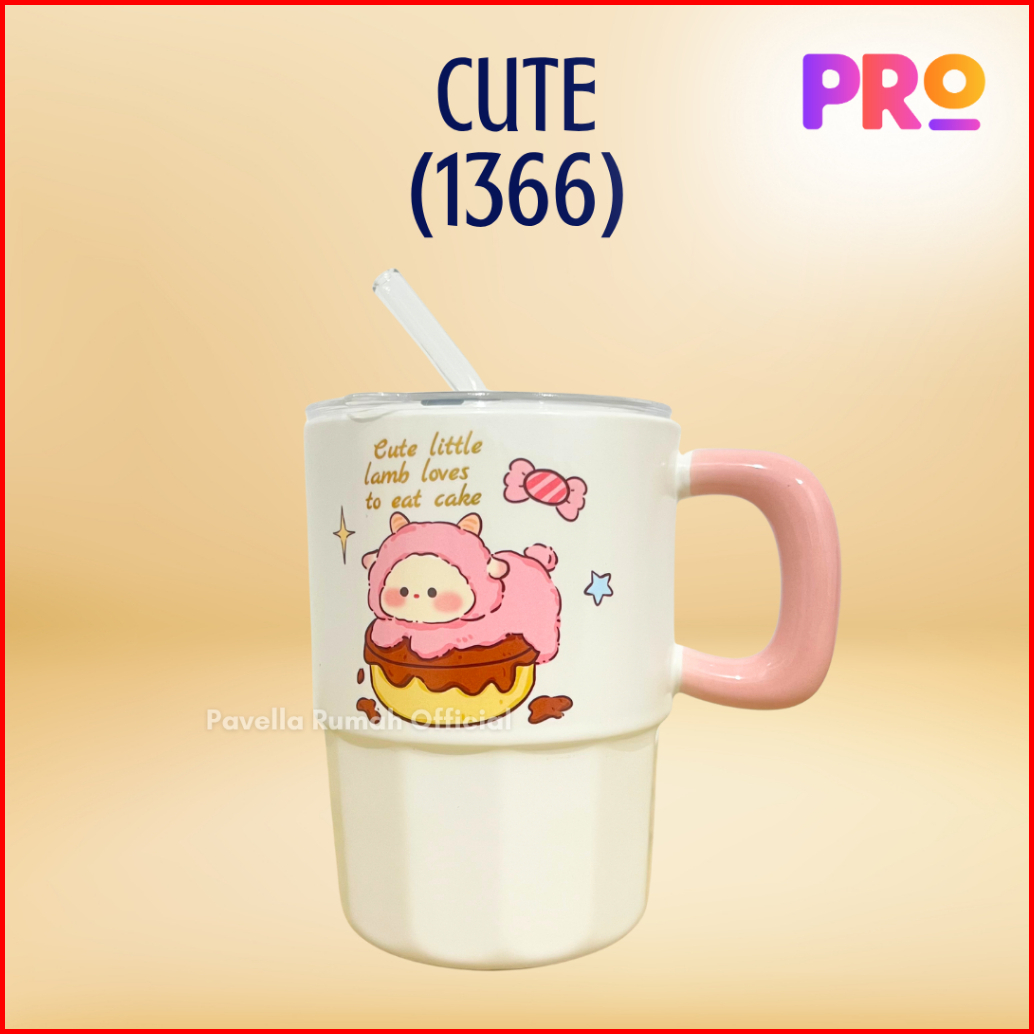 Pavella Cangkir Gelas Tinggi Stawberry Panda Keramik Lucu Cute Ceramic Mug Cup Kucing Lucu Klasik Unik Tahan Panas Bahan