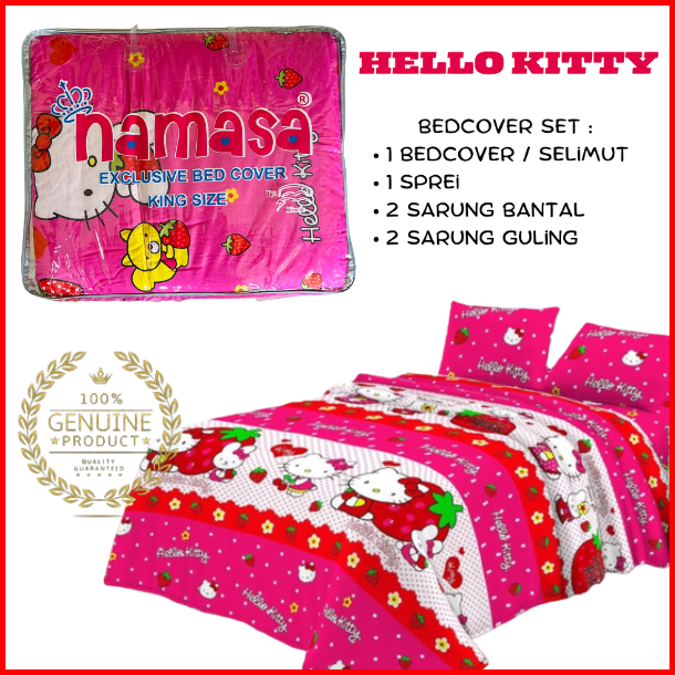 Namasa Bedcover Set Sprei Bahan Microtex Disperse Tidak Luntur Adem Ukuran 180x200 Motif Hello Kitty