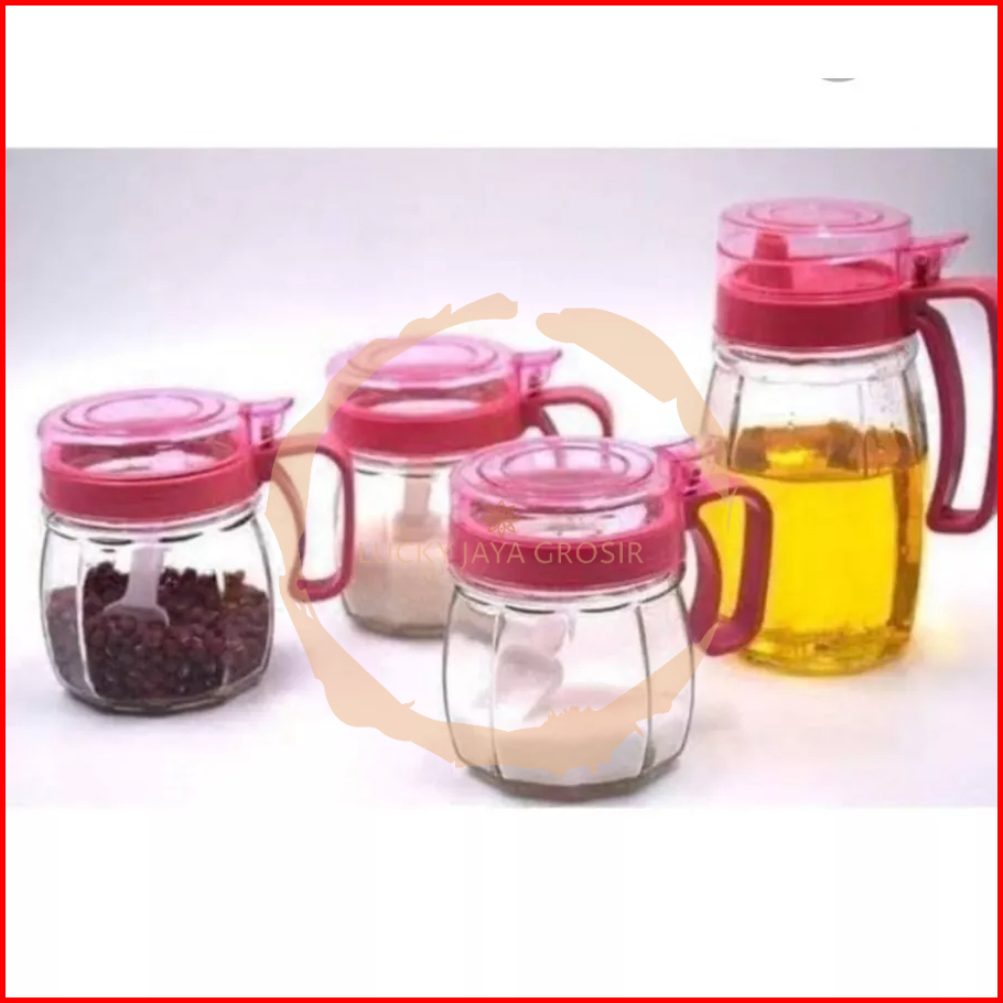 Tempat Bumbu Tempat Minyak Kaca Set 4 In 1 Wadah Bumbu Serbaguna
