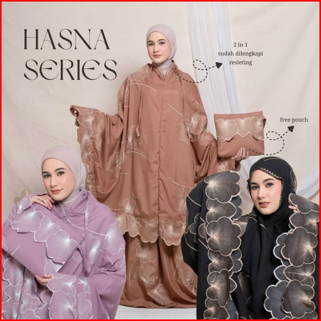 Mukena Dewasa Hasna Resleting 2in1 Full Bordir Jumbo Katun Mikro Premium