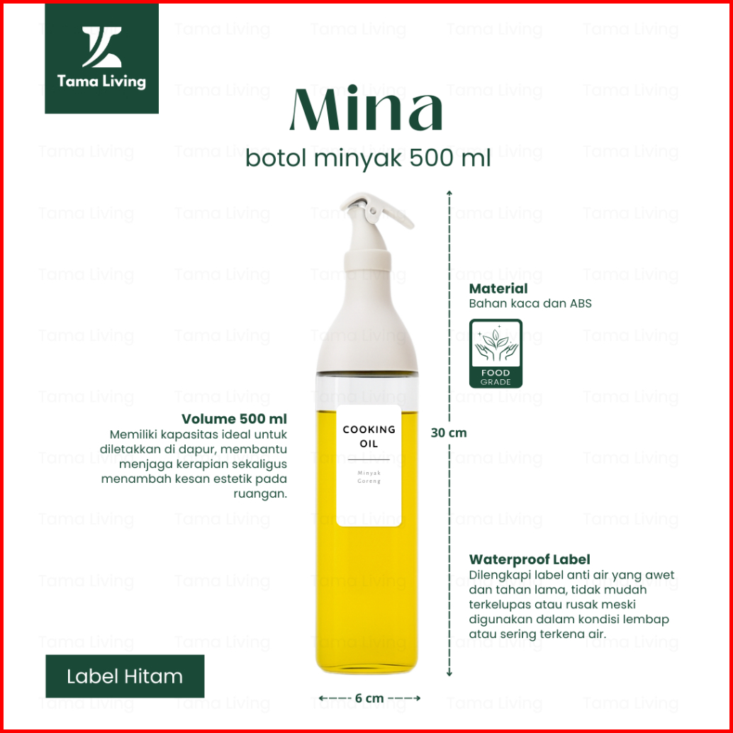 Tama Living Mina Botol Minyak Korea Label Kotak 500 Ml Bahan Kaca Estetik Botol Minyak Wadah Minyak