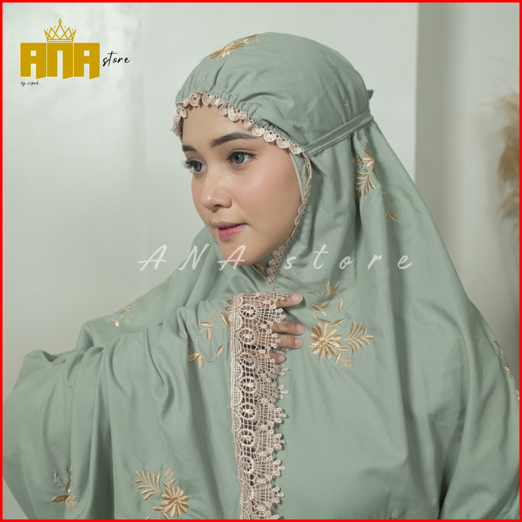 Ana Store - Mukena Rania Dewasa Katun Bordir Tabur Bunga Renda Mewah Cantik Jumbo