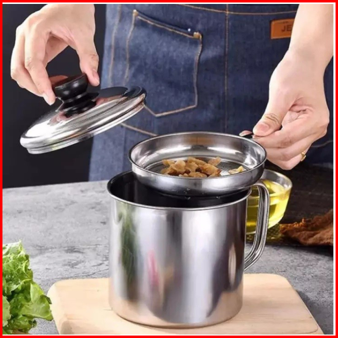 Wadah Saringan Minyak Oil Pot Stainless Steel Tempat Minyak Murah 1.3 Liter Wadah Minyak Murah