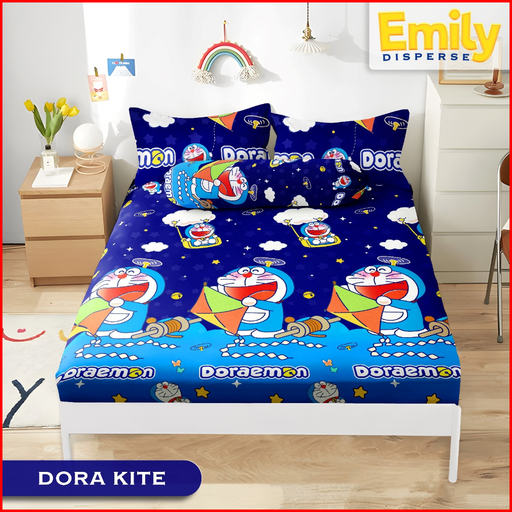 Bedcover Set Motif Doraemon Ukuran King 180x200 Queen 160x200