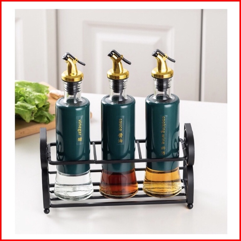 Botol Kaca Multifungsi Botol Minyak Set Plus Rak