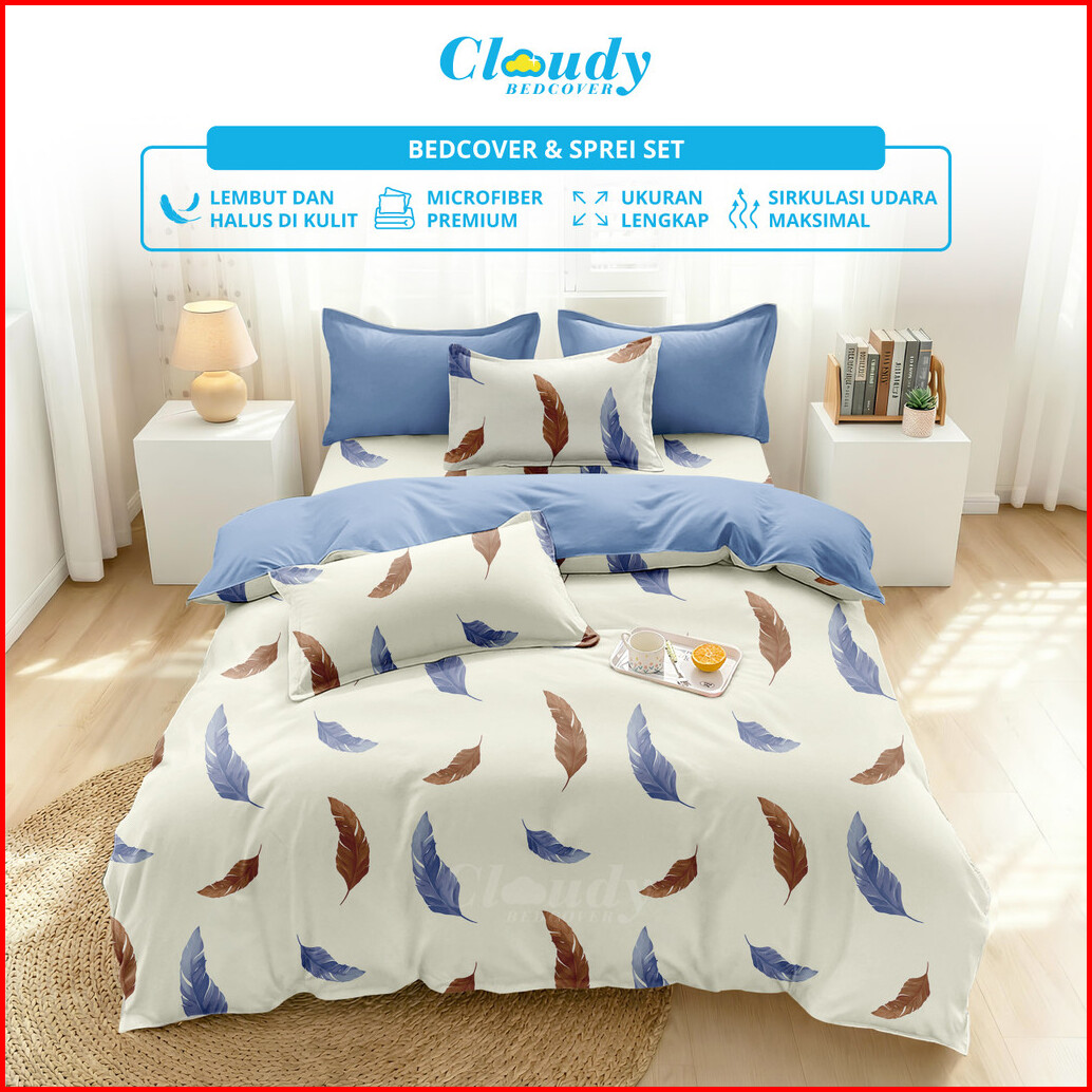 Bedcover Set Sprei Eliza Mix Royal Blue - Ukuran Lengkap 90x200 - 200x200 - Cloudy Bedcover