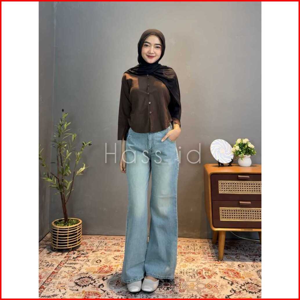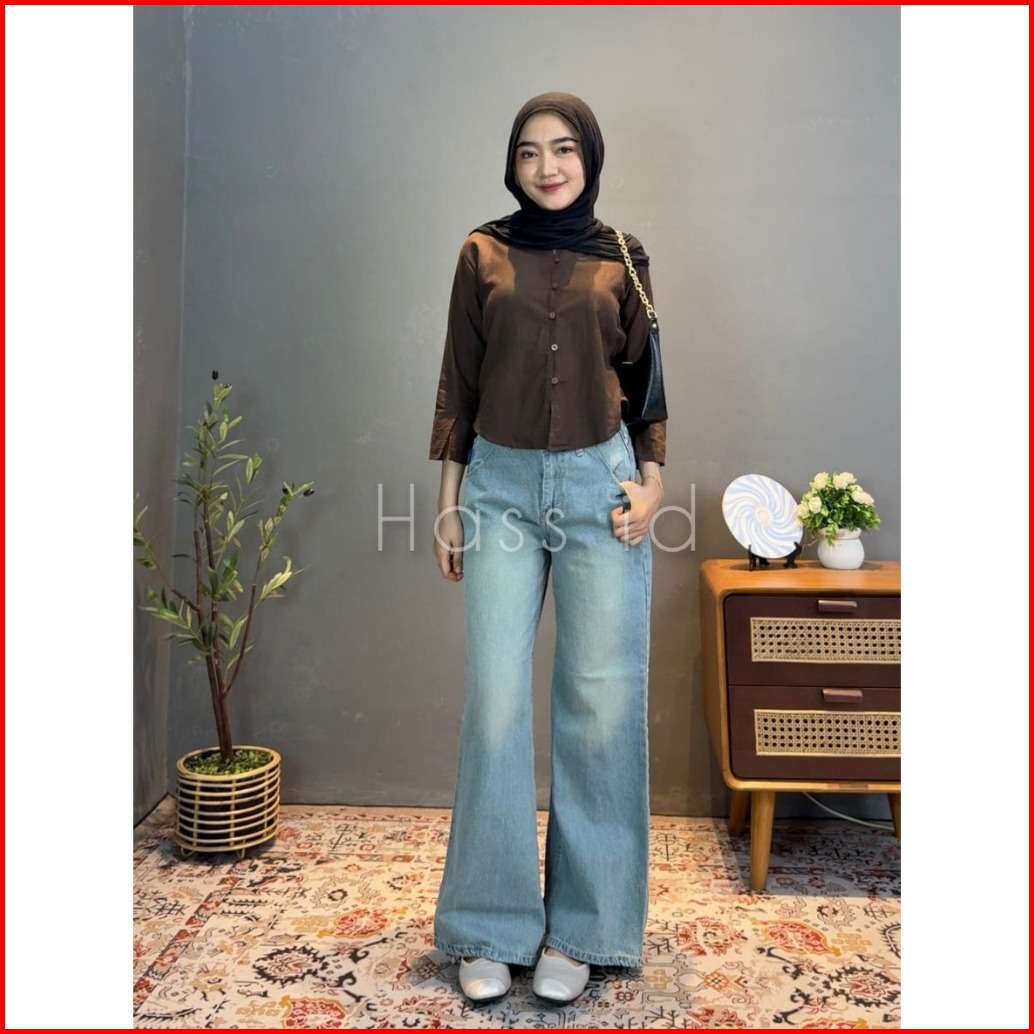 Hass Id Flare Jeans Wanita Vintage Retro Biru Blue Celana Denim Wanita Gaya Retro Dengan Desain Flare Lebar - Flare Jean