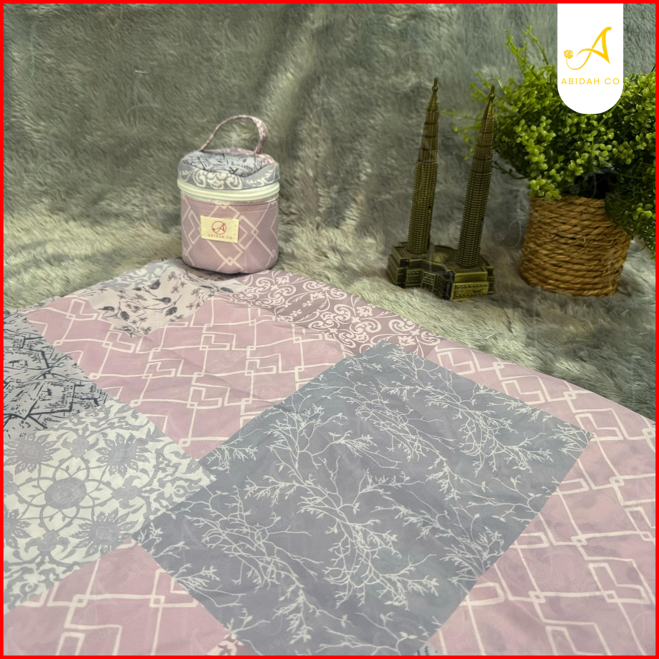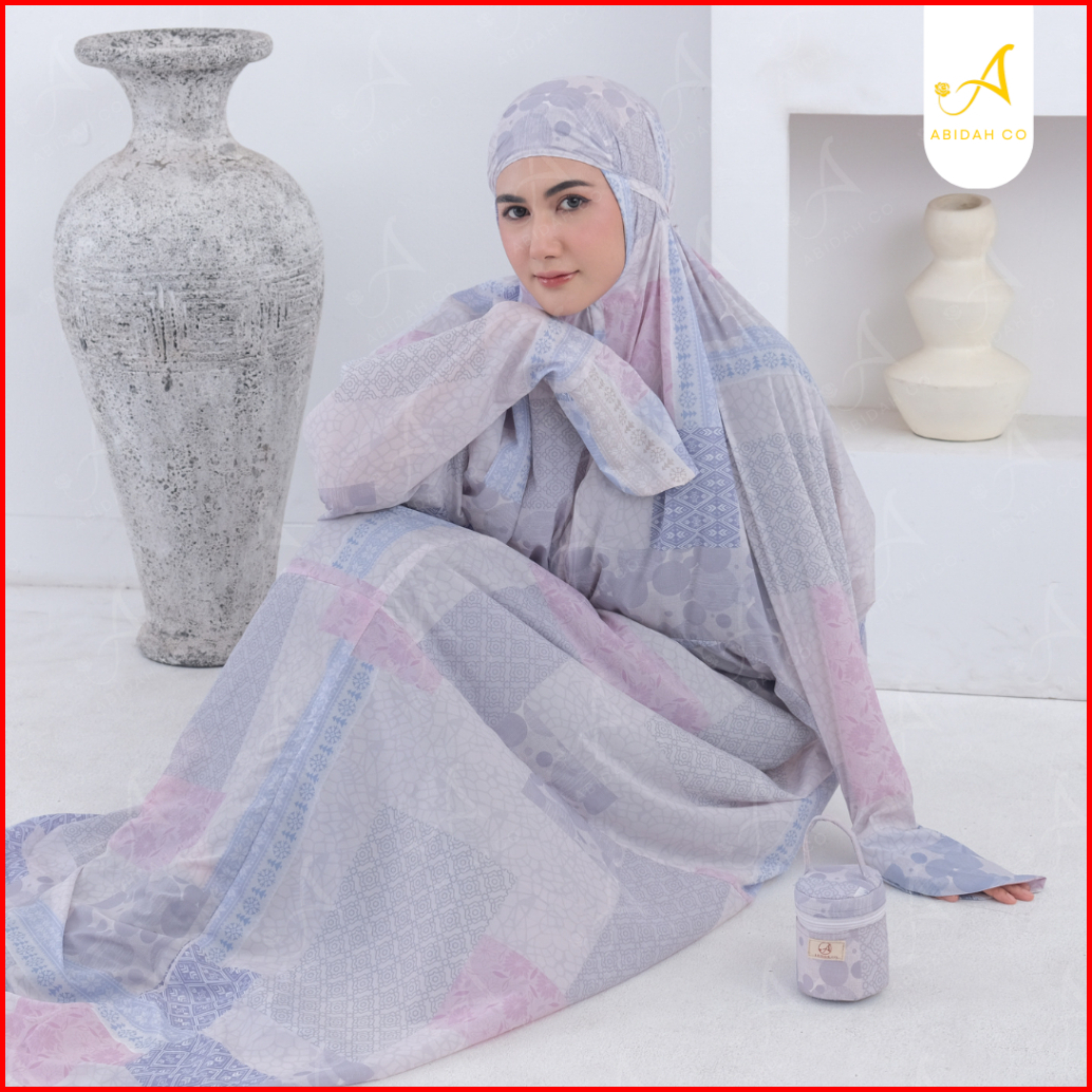 Abidah.co - Mukena Traveling Mini Pouch Terusan Lajuran Dewasa 2in1 Tas Mini Parasut Korea Motif