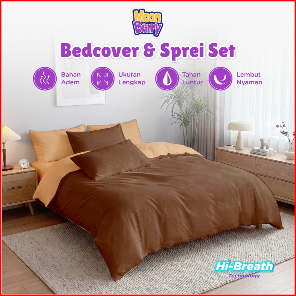 Bed Cover Set Sprei Brown Mix Khaki Ukuran Lengkap 180x200 160x200 120x200 - Moonberry Bedcover