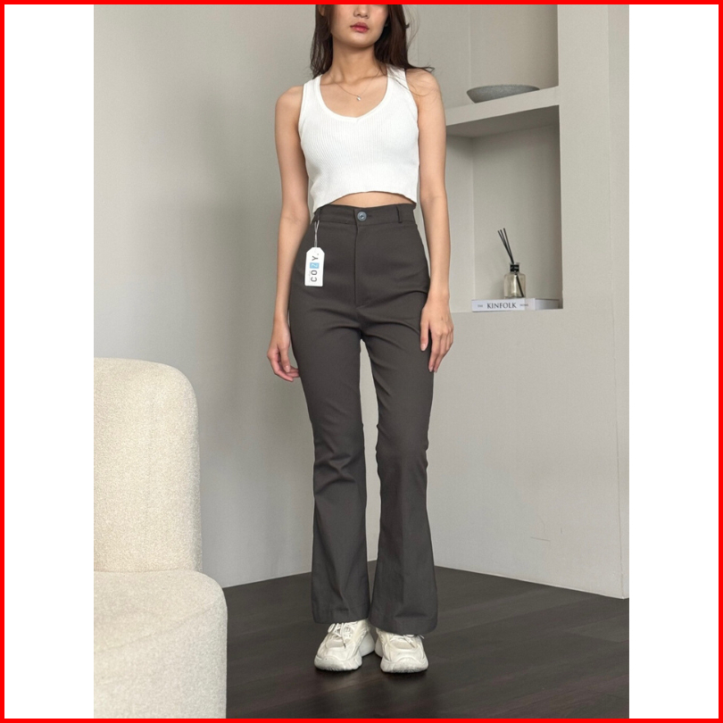 Flare Pants - Highwaist Kulot Cutbray - Celana Kantor Formal Casual Chinos Stretch Melar