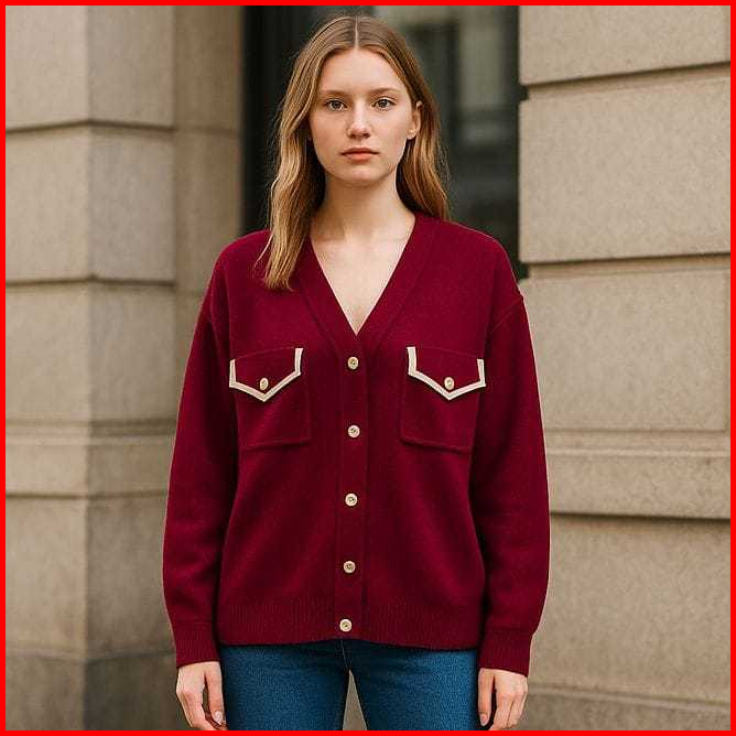 Alena Cardigan Rajut Saku Wanita Elegan Look Chic Cozy Korean Style - Oversize