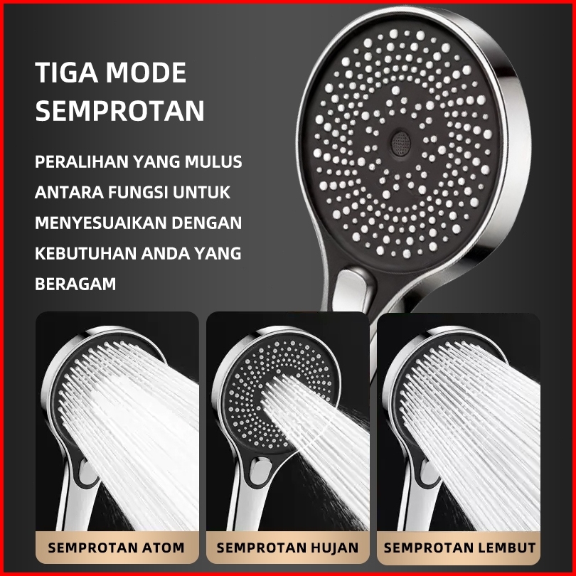Bagkko Shower Mandi 3 Mode Shower Head Kepala Pancuran Bertekanan Tinggi Menyesuaikan