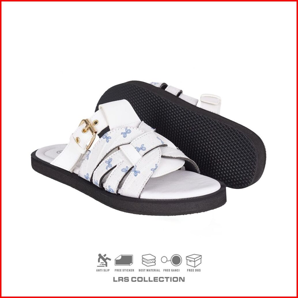 Lrs Collection - Sandal Wanita Kanvas Pita Patrecia White Black Style Korea Sandal Wanita Flat
