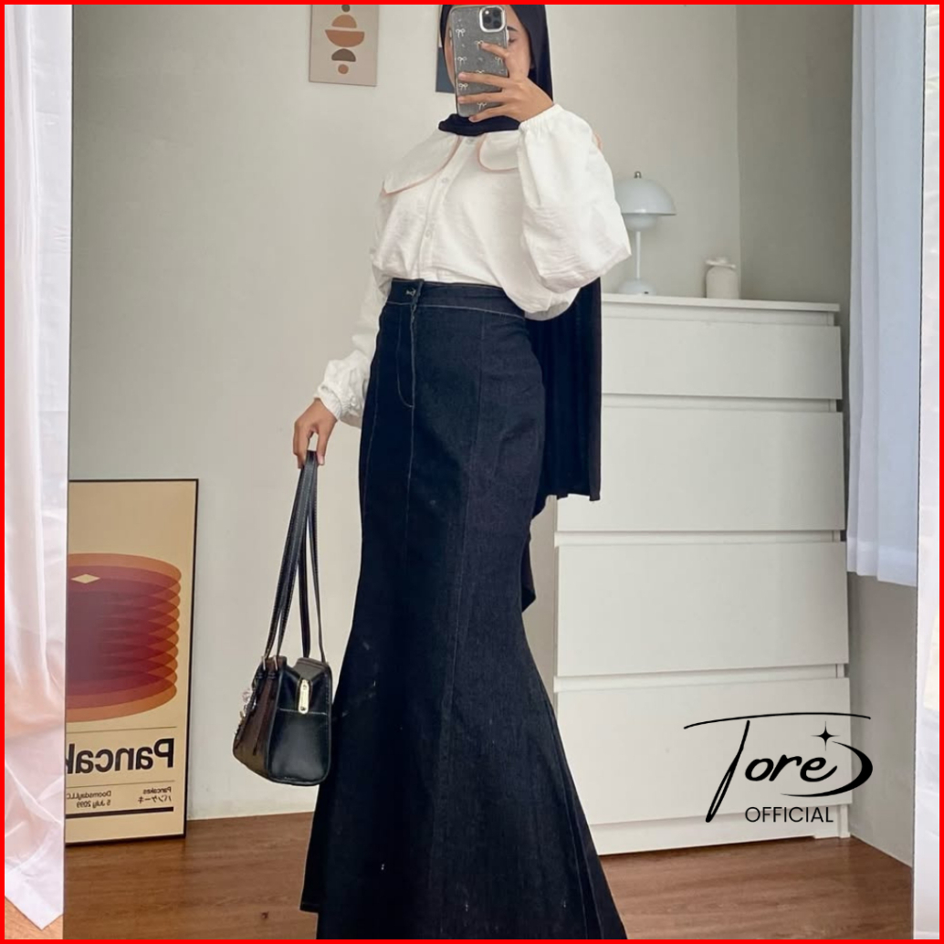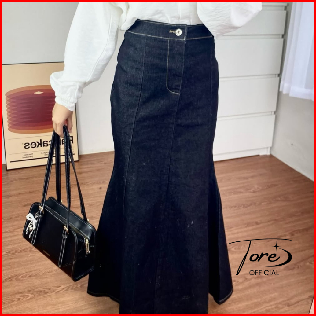 Tore- Denim Mermaid Skirt Womens Highwaist Slim Korean Style Rok Duyung