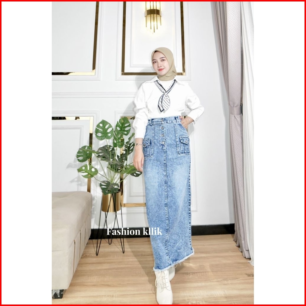 Rok Jeans Morren Rawis Saku Tutup Rok Jeans Morren Wanita Kekinian Rok Jeans Wanita Rawis Panjang Terhits Korea Stayl