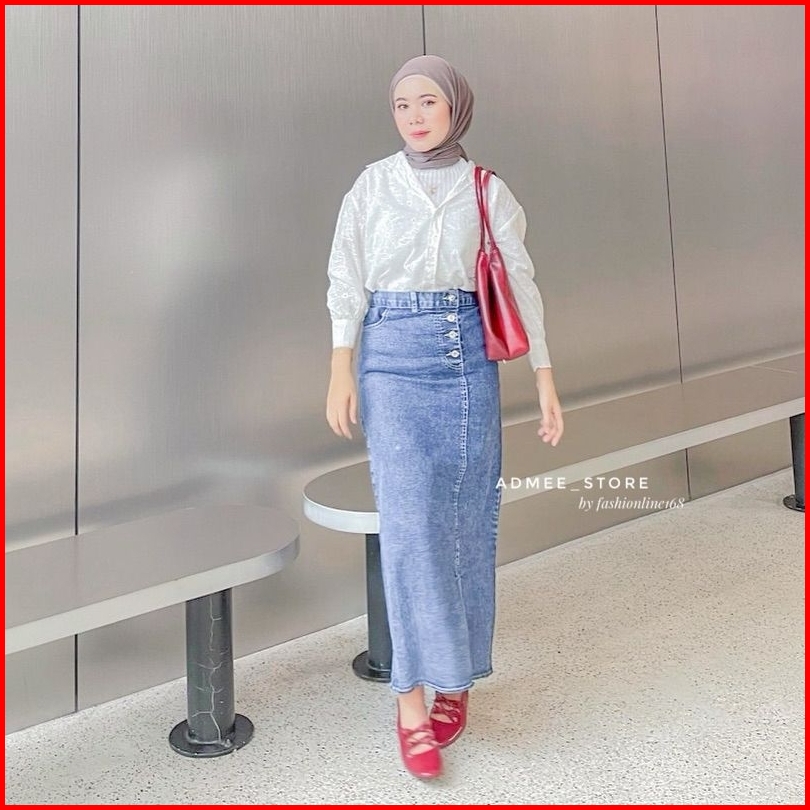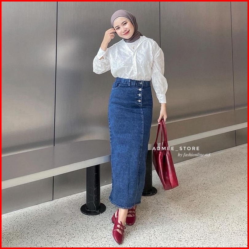 Rok Jeans Skirt Belah Samping Kamila Tebal Retro