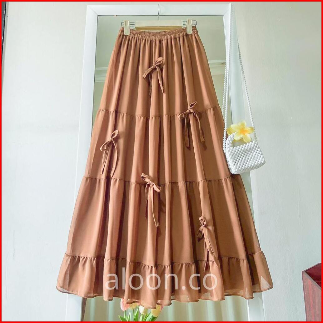 Freya Rok Midi Rempel Pita Ceruty Babydoll Premium Rok Coquette Susun Korean Style
