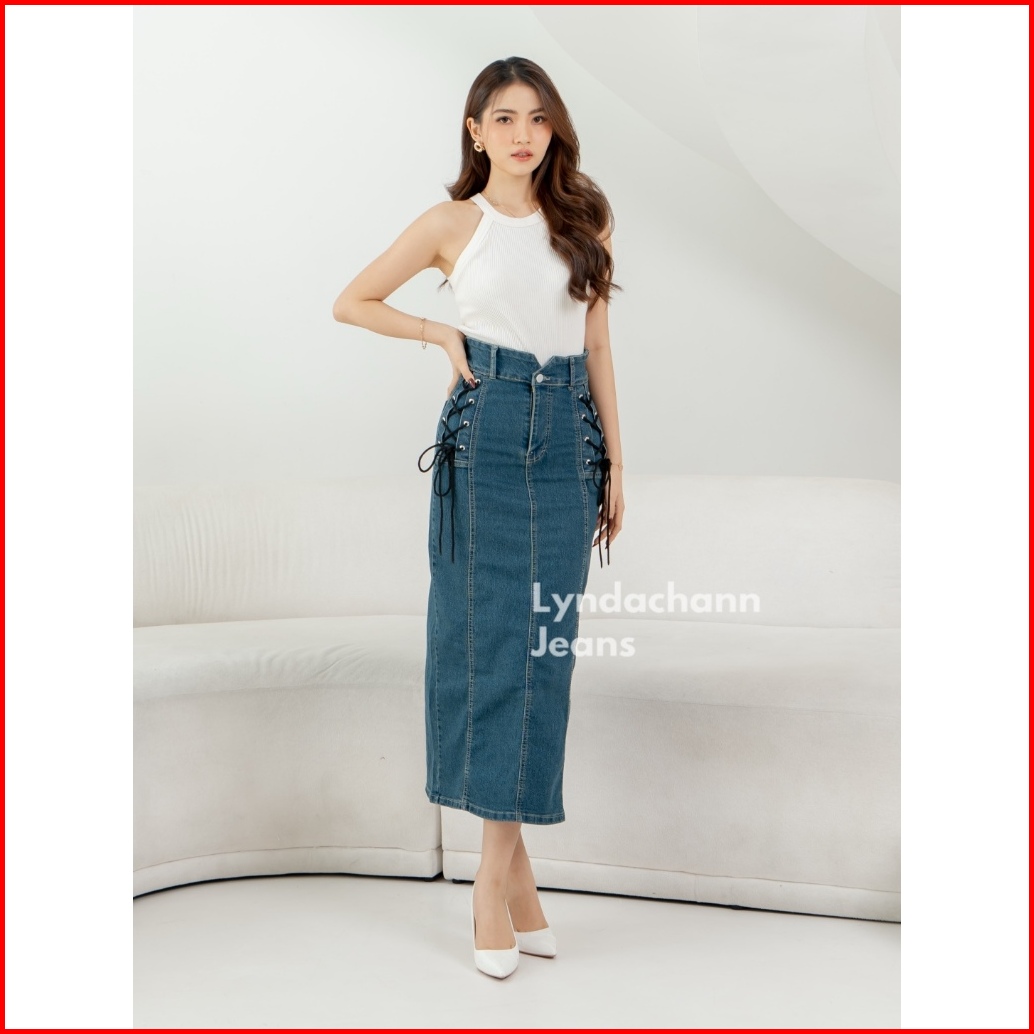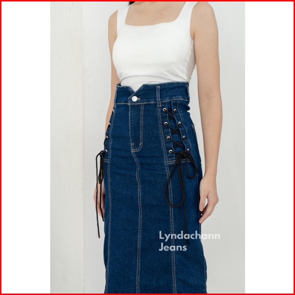 Lyndachann - Riyu Rok Jeans Tali Panjang Bawahan Wanita Premium Rok Span
