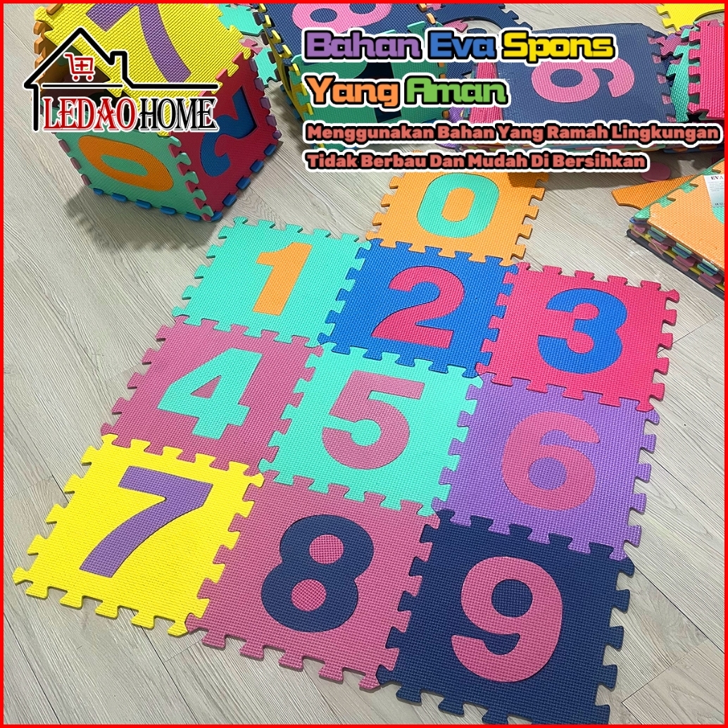 Ledaohome 10 Pcs Matras Evamat Matras Puzzle Angka Arab Karpet Puzzle Matras Alas Lantai Evamat 30x30cm Lembut Matras Be
