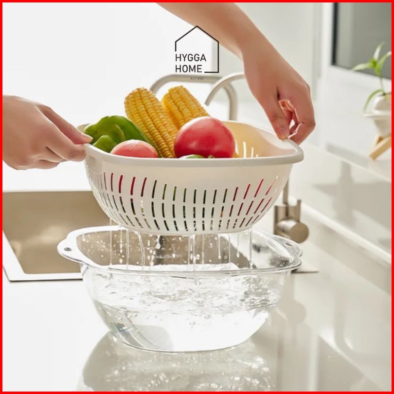 Hygga Home Airi Keranjang Baskom Pencuci Saringan Buah Sayur Peniris Drain Basket