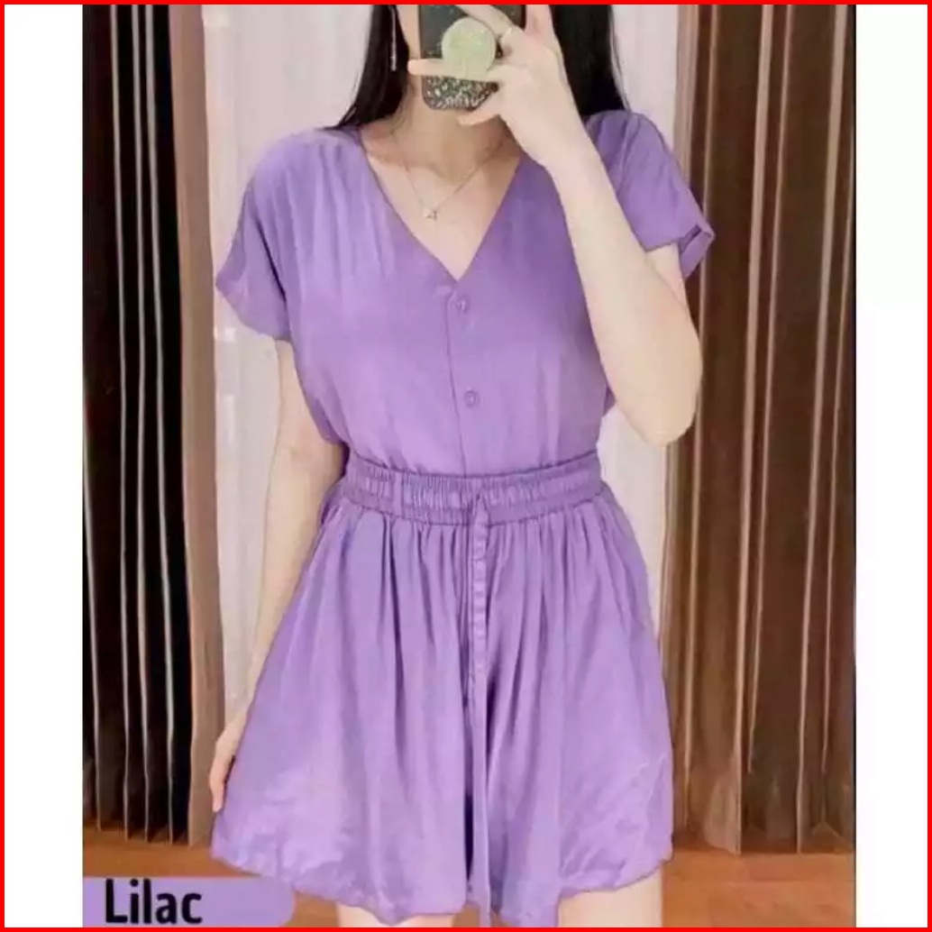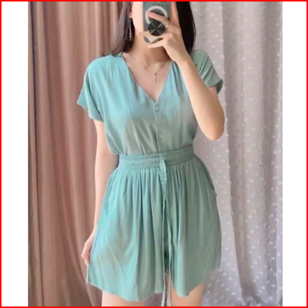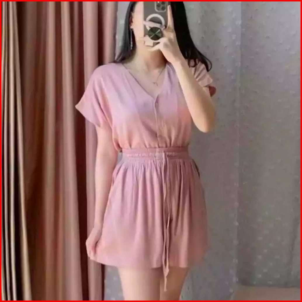Babydoll Baju Wanita One Set Piyama Setelan Tidur Atasan Lengan Pendek Dan Celana Pendek Bahan Katun