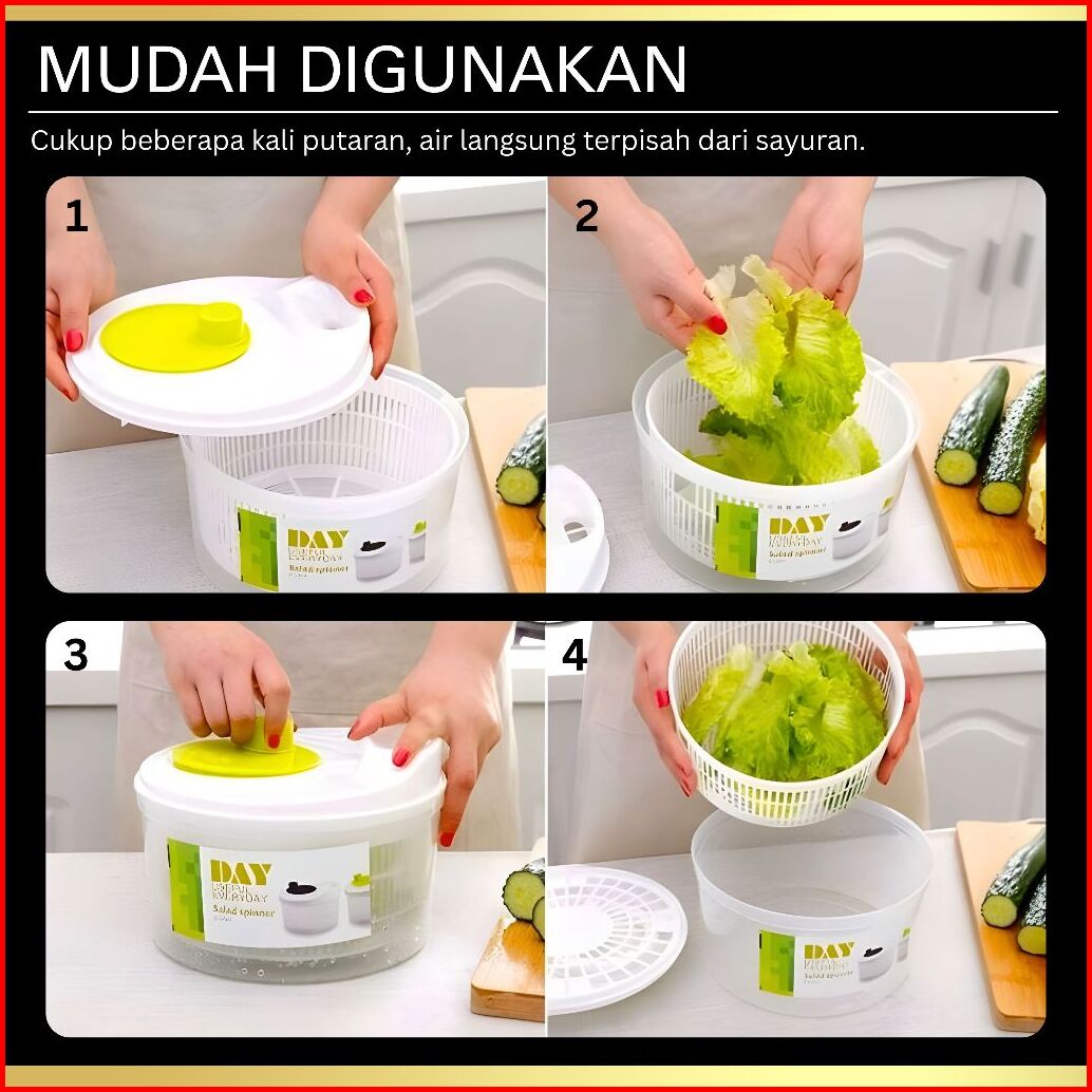 Onel Peniris Pengering Sayuran Putar 3l Salad Spinner Bowl Pemutar Pengaduk Sayuran Free Bubble